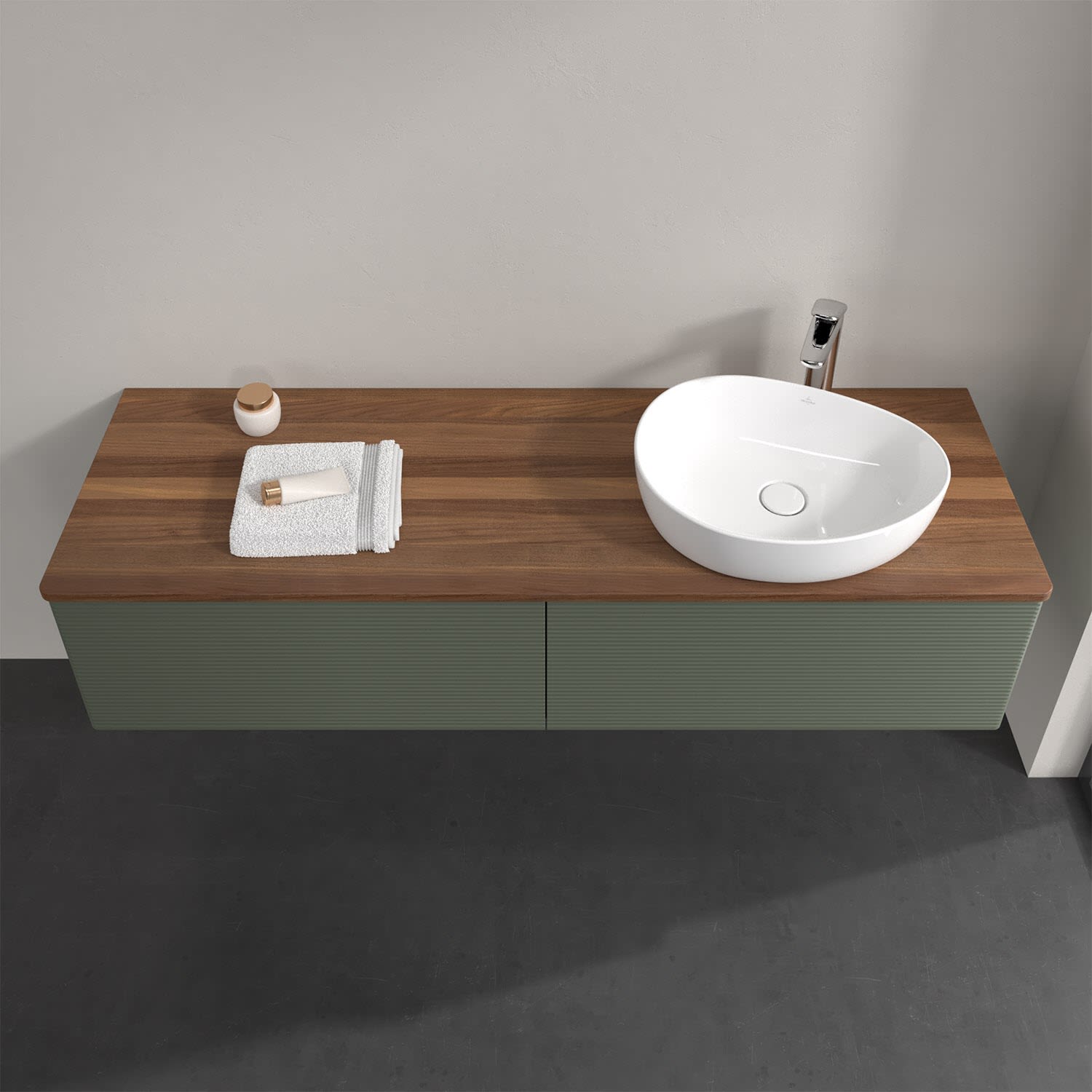 Villeroy & Boch Antao Waschbeckenunterschrank, 160 x 36 cm, 2 Auszüge mit LED-Licht, Front mit Struktur, mit Hahnloch, für Waschtisch rechts