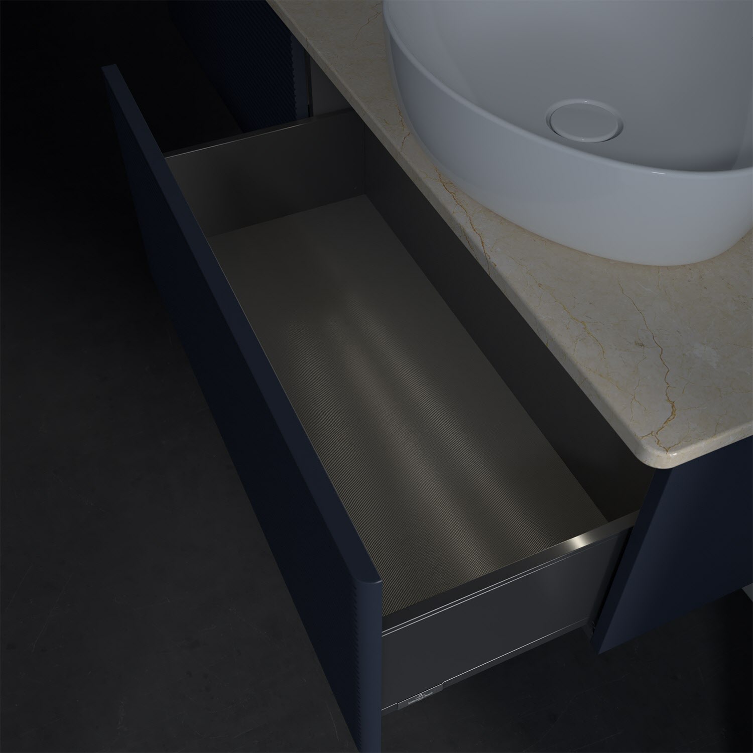 - kein Umfallen oder Verrutschen von Pflegeprodukten in den Schubladen dank rutschhemmendem Boden