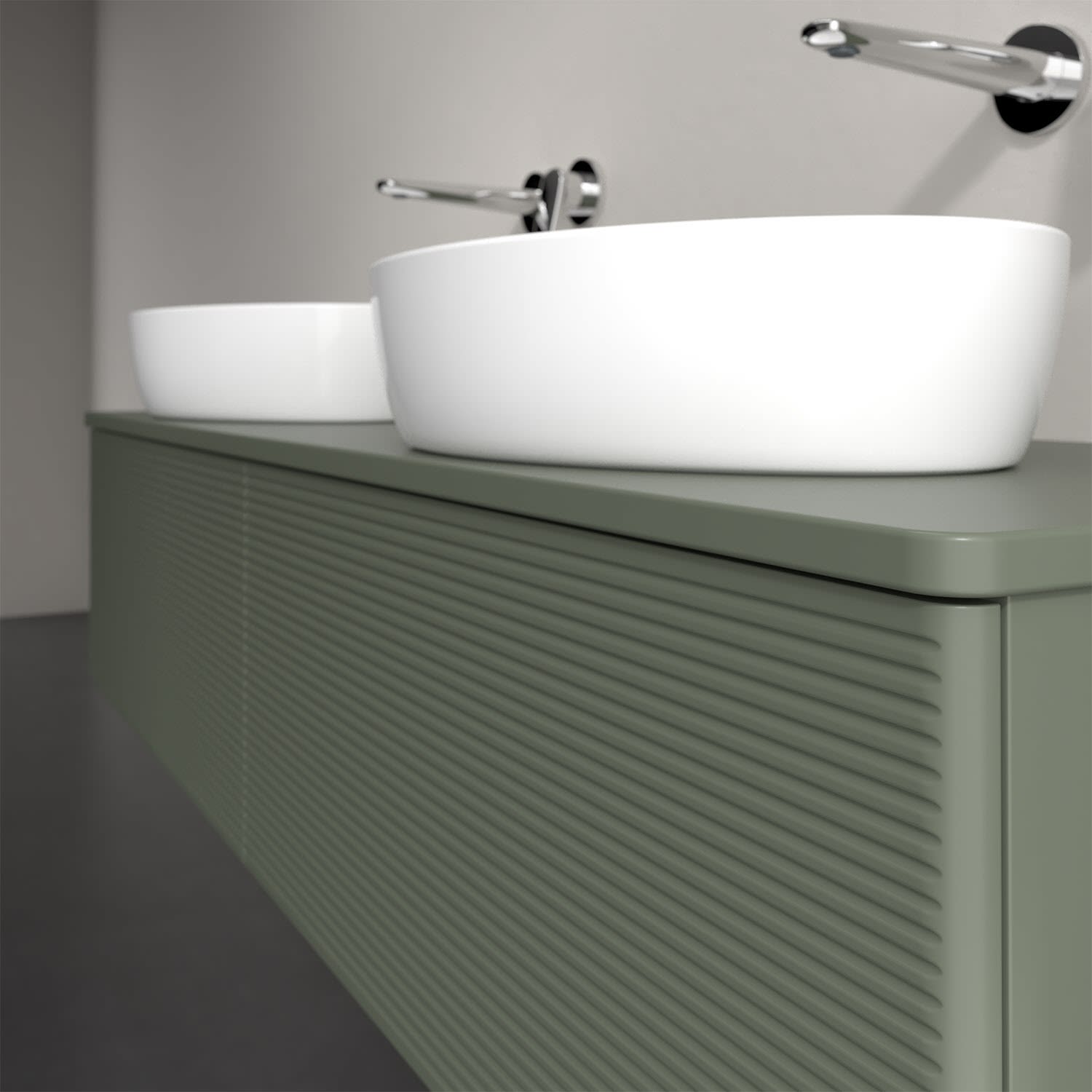 Der wandhängende Antao Waschtischunterschrank für zwei Aufsatzwaschtische bietet mit seinen beiden extra hohen Auszügen und seiner erstaunlichen Größe viel Platz zum Verstauen von Utensilien im Badezimmer. Inspiriert von der Natur überzeugt der Unterschrank auch optisch mit sanfter Formsprache und abgerundete Kanten. Die grifflosen Auszüge mit strukturierter Front sind mit der Push-to-Open Funktion ausgestattet und verfügen über einen Antirutschboden, damit Utensilien sicher verstaut werden können. Den Überblick behält man dank der warmweißen Auszugsbeleuchtung, die sich automatisch beim Öffnen einschaltet. Mit seiner Vollauszug- und Selbsteinzug-Funktion ist der Schrank einfach praktisch und leicht zu bedienen. Qualität von Villeroy & Boch! Für eine besonders leichte Pflege sorgt die mehrschichtig deckend lackierte Oberfläche.