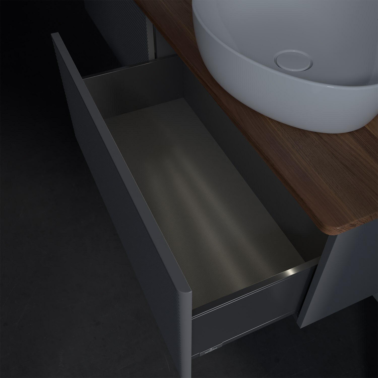 - kein Umfallen oder Verrutschen von Pflegeprodukten in den Schubladen dank rutschhemmendem Boden