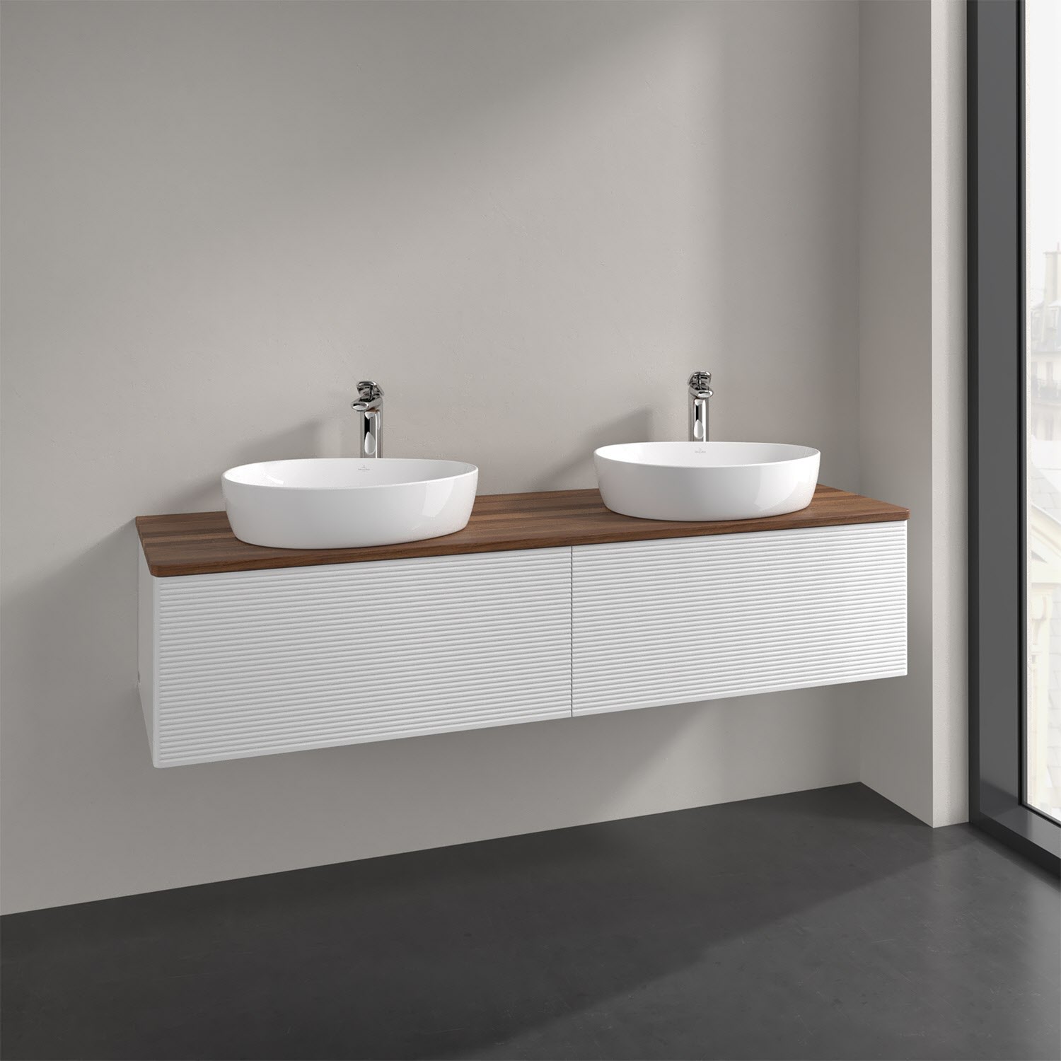 Villeroy & Boch Antao Waschbeckenunterschrank, 160 x 36 cm, 2 Auszüge mit LED-Licht, Front mit Struktur, mit Hahnloch, für Waschtisch links und rechts