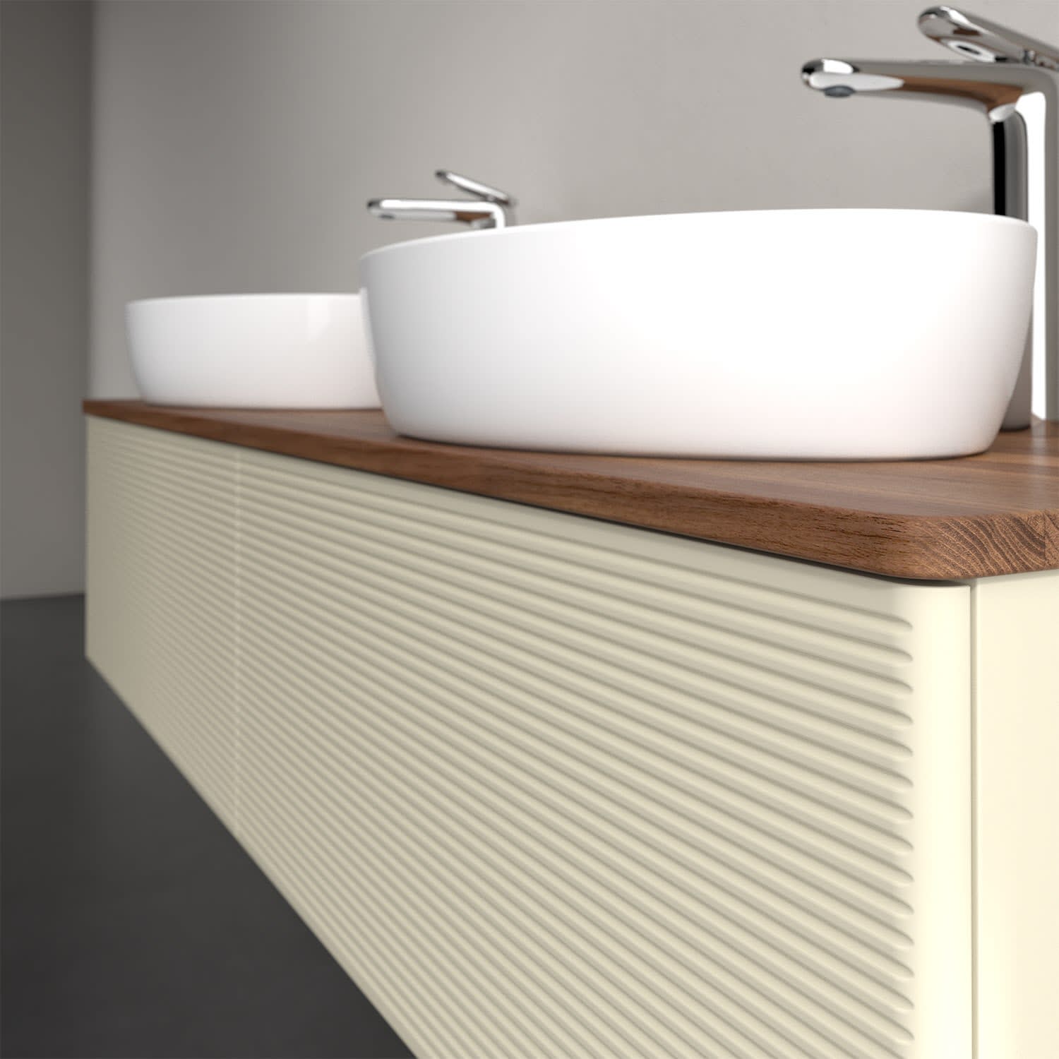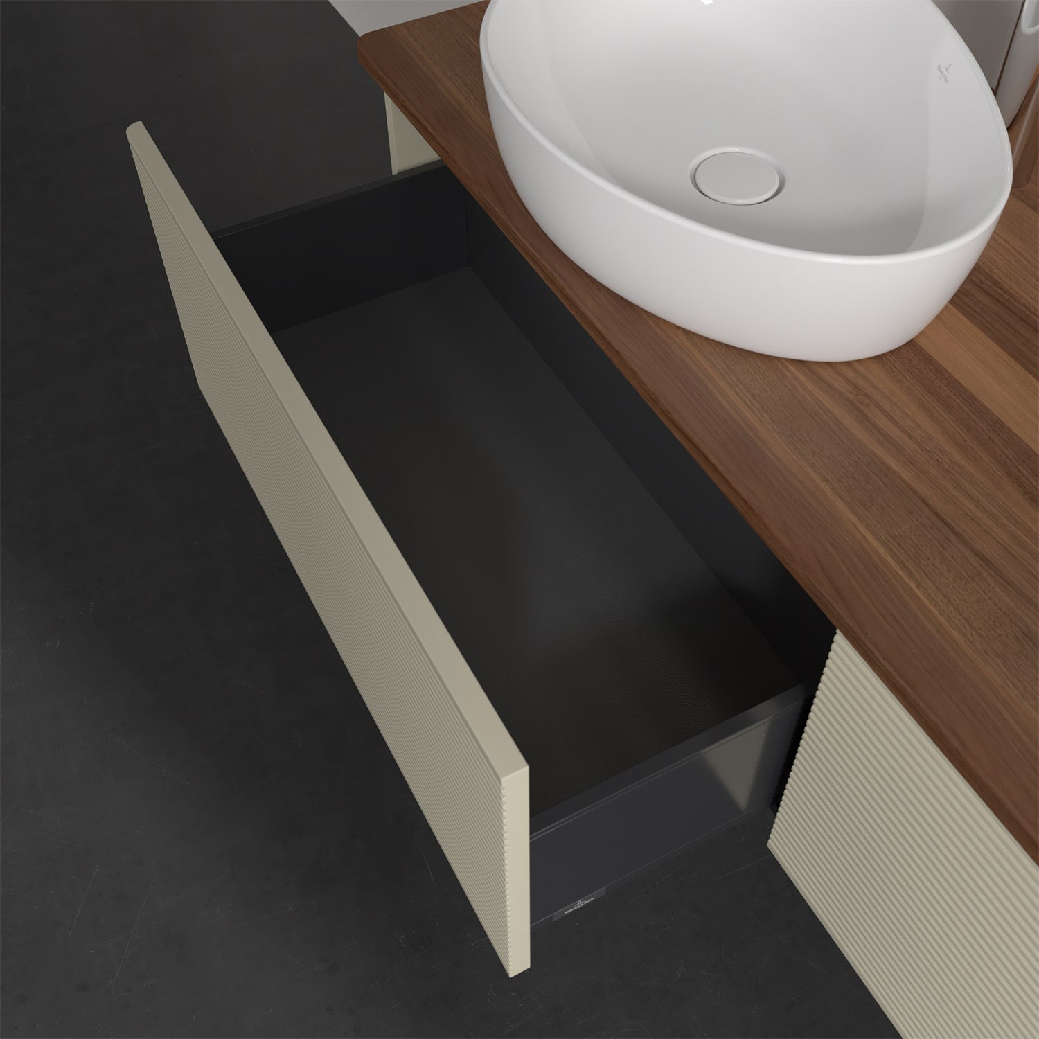 Für diesen Waschbeckenunterschrank stehen Ihnen Aufsatzwaschtische aus verschiedenen Serien zur Verfügung (siehe "Passliste" unter Downloads). Ein ausgewähltes Beispiel finden Sie im Zubehör. Den Waschtisch bitte separat mitbestellen.