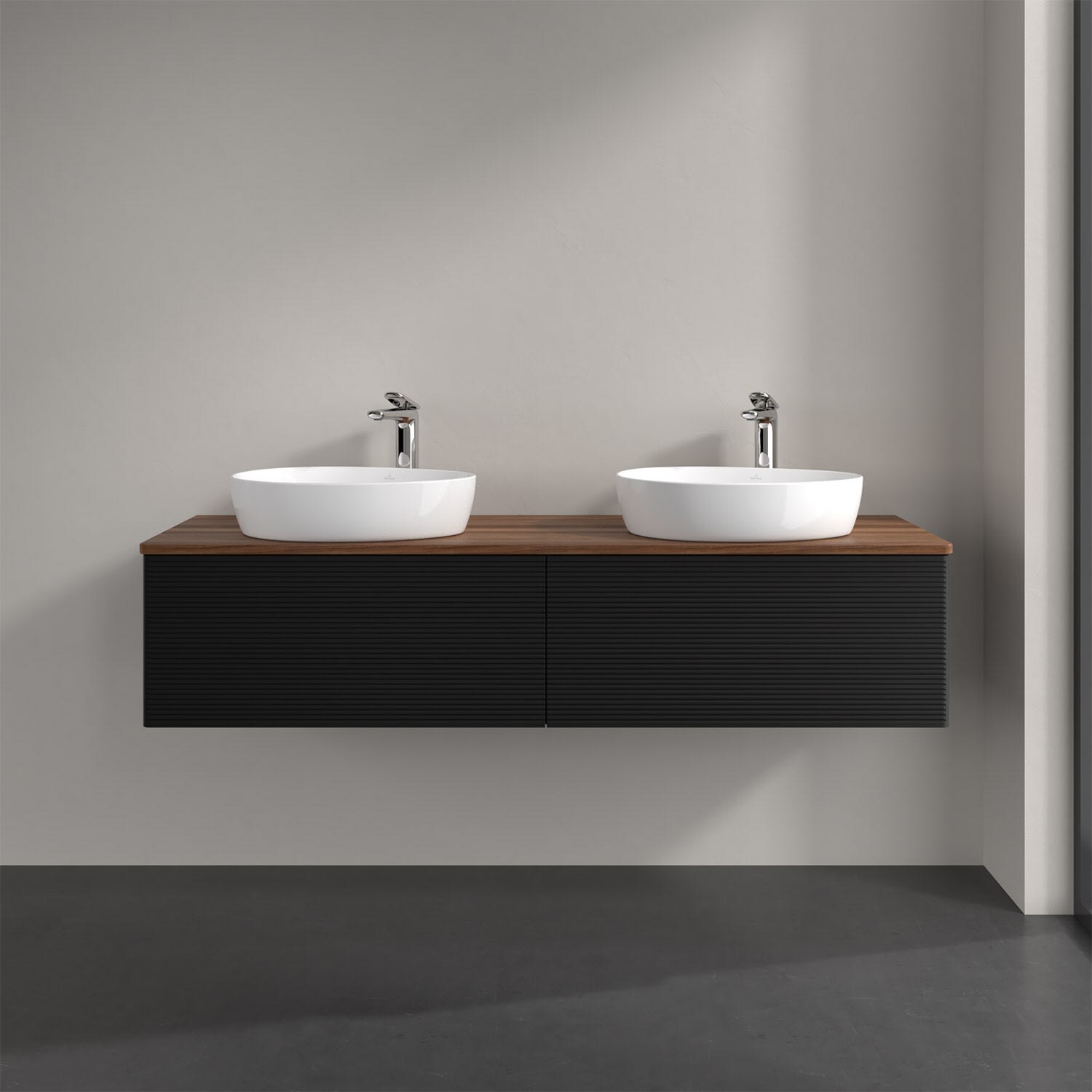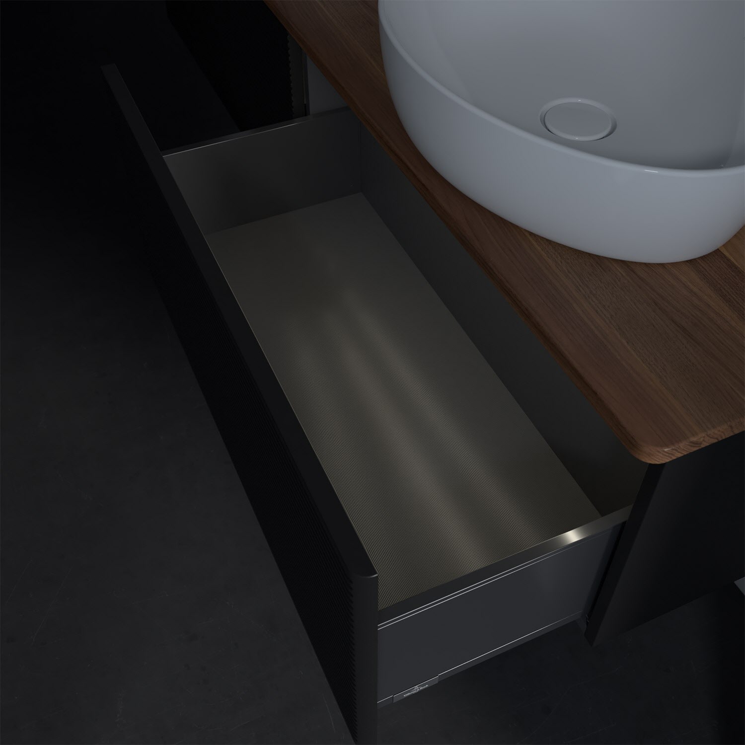Villeroy & Boch Antao Waschbeckenunterschrank, 160 x 36 cm, 2 Auszüge mit LED-Licht, Front mit Struktur, mit Hahnloch, für Waschtisch links und rechts