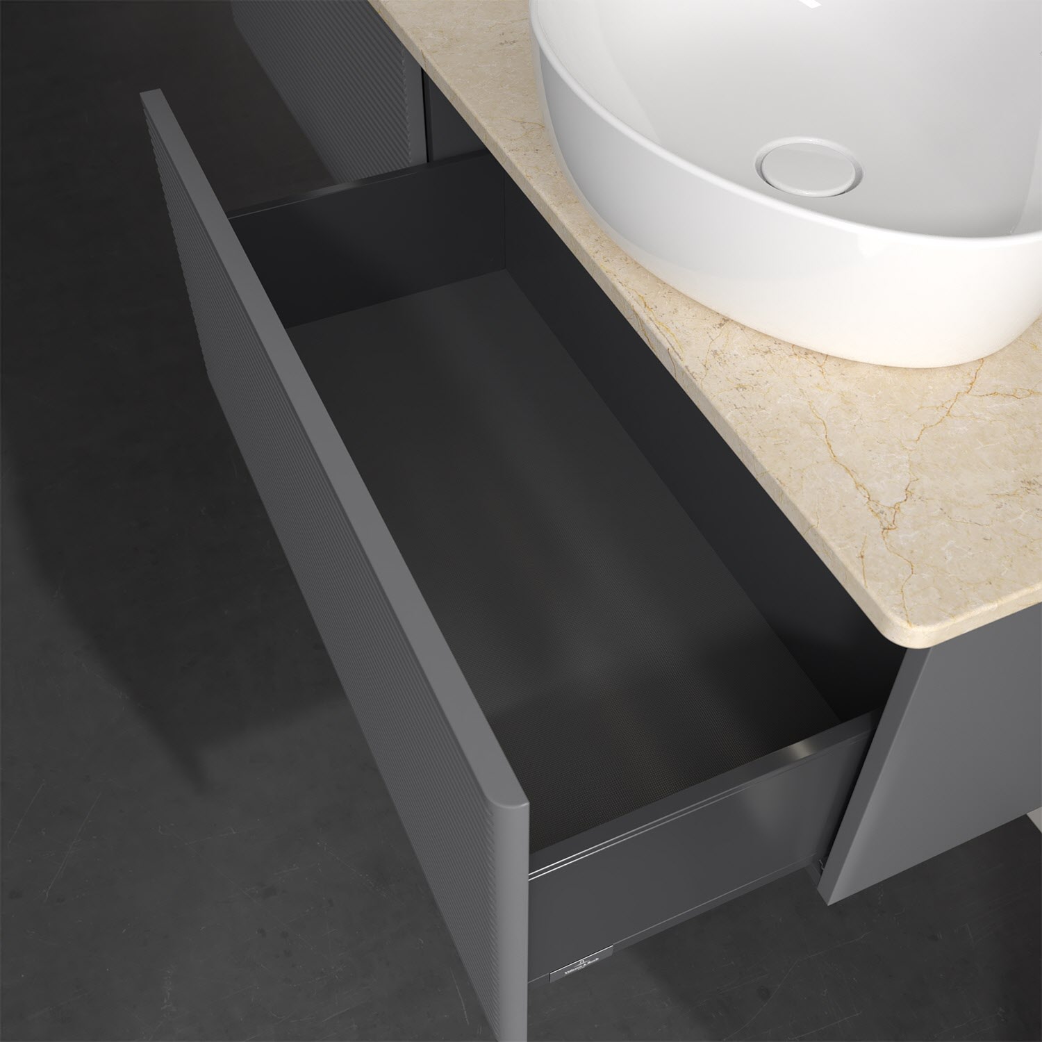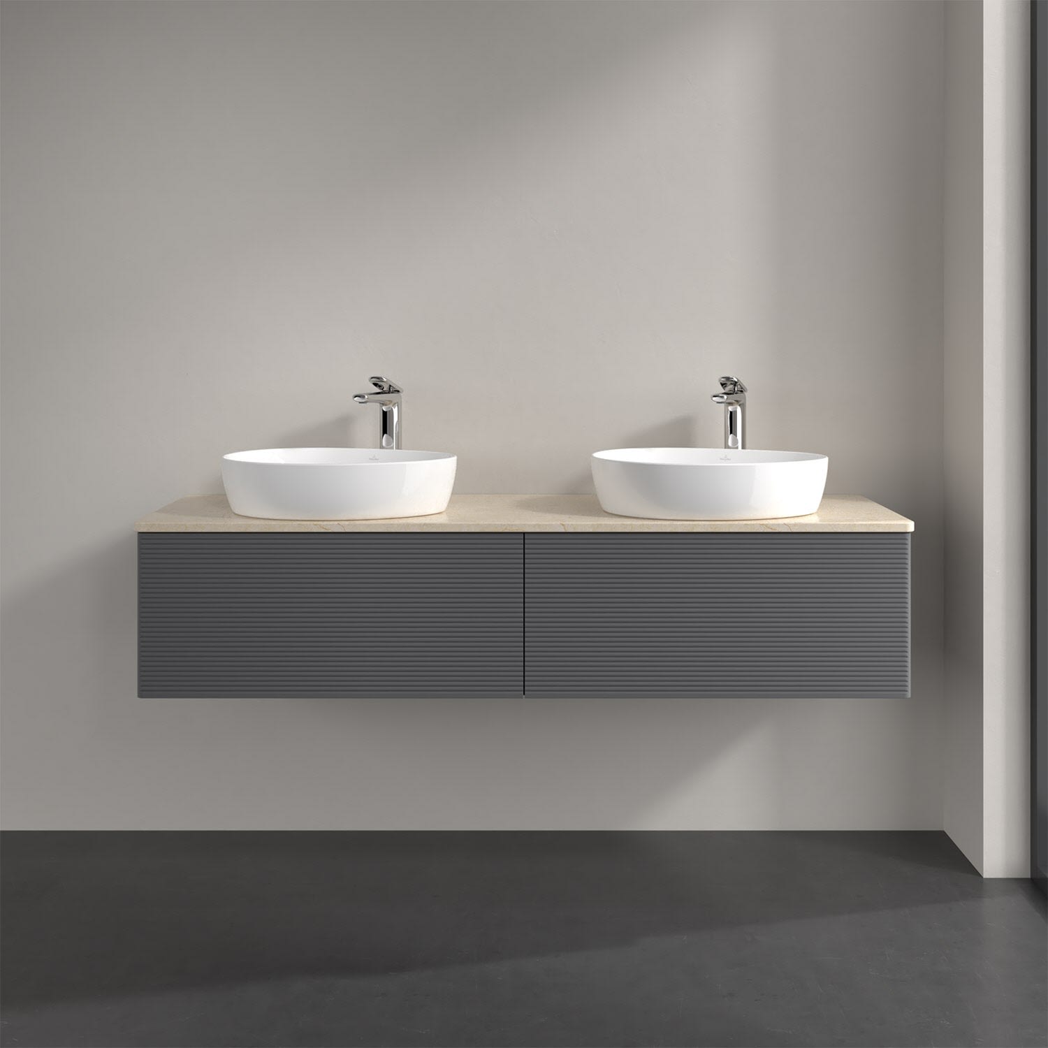 Villeroy & Boch Antao Waschbeckenunterschrank, 160 x 36 cm, 2 Auszüge mit LED-Licht, Front mit Struktur, mit Hahnloch, für Waschtisch links und rechts