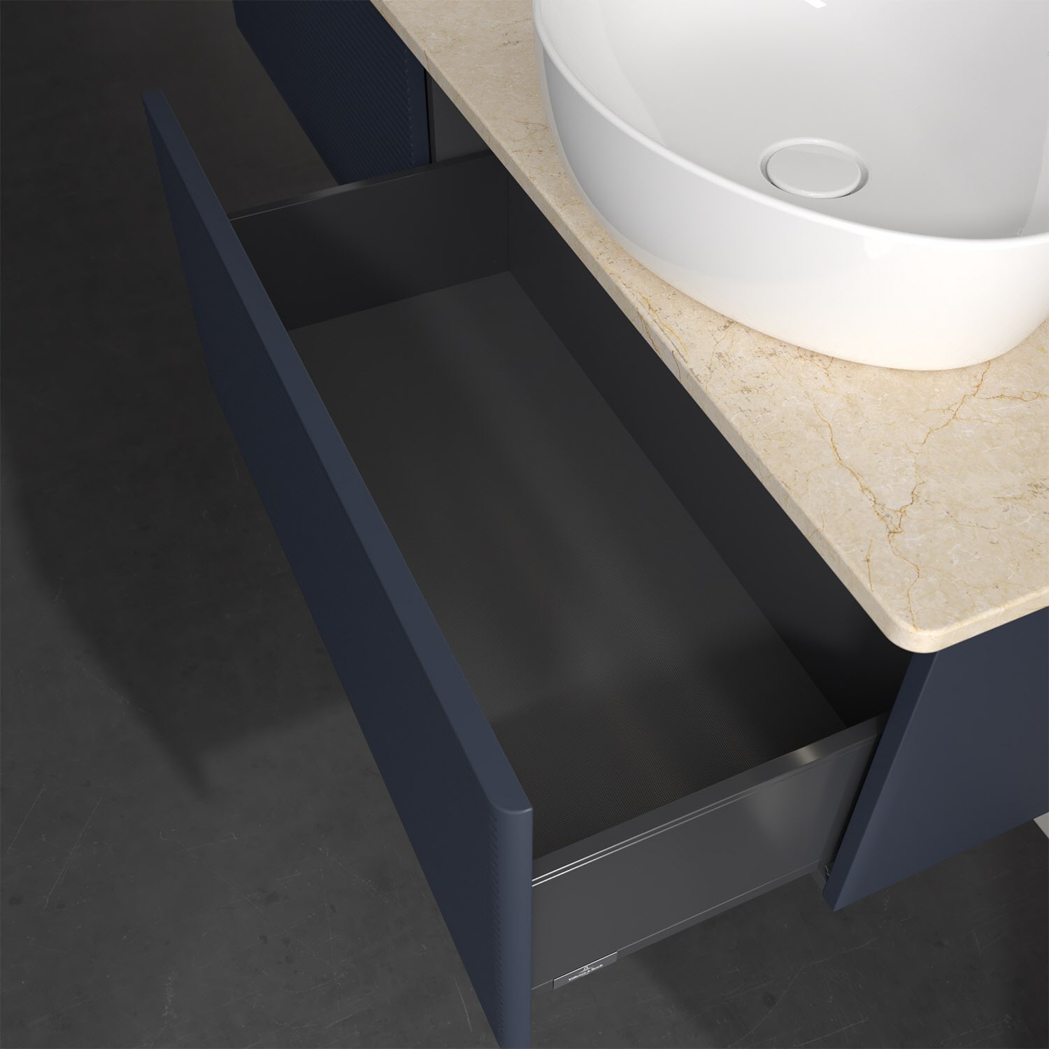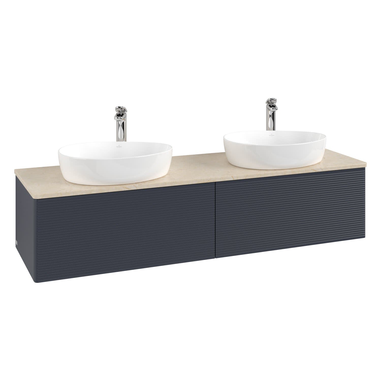 Villeroy & Boch Antao Waschbeckenunterschrank, 160 x 36 cm, 2 Auszüge mit LED-Licht, Front mit Struktur, mit Hahnloch, für Waschtisch links und rechts
