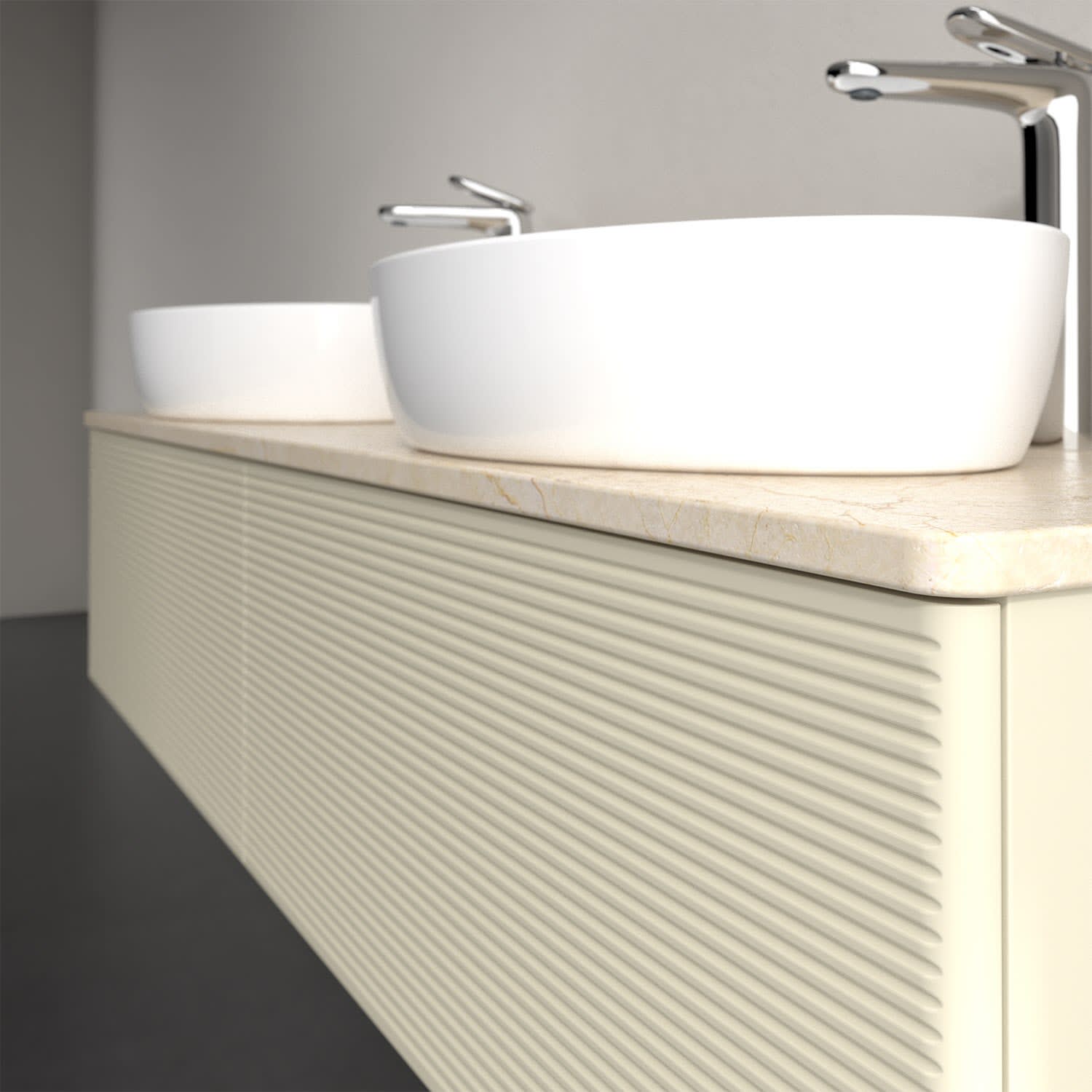 Für diesen Waschbeckenunterschrank stehen Ihnen Aufsatzwaschtische aus verschiedenen Serien zur Verfügung (siehe "Passliste" unter Downloads). Ein ausgewähltes Beispiel finden Sie im Zubehör. Den Waschtisch bitte separat mitbestellen.