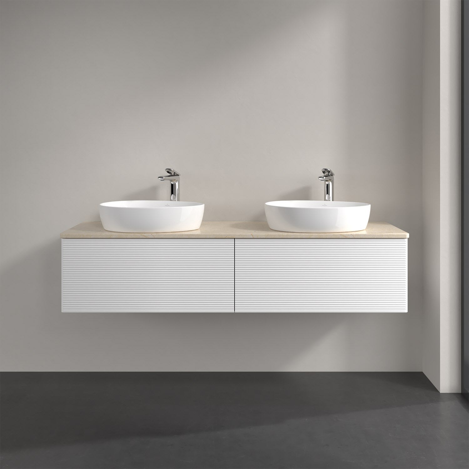 Villeroy & Boch Antao Waschbeckenunterschrank, 160 x 36 cm, 2 Auszüge mit LED-Licht, Front mit Struktur, mit Hahnloch, für Waschtisch links und rechts