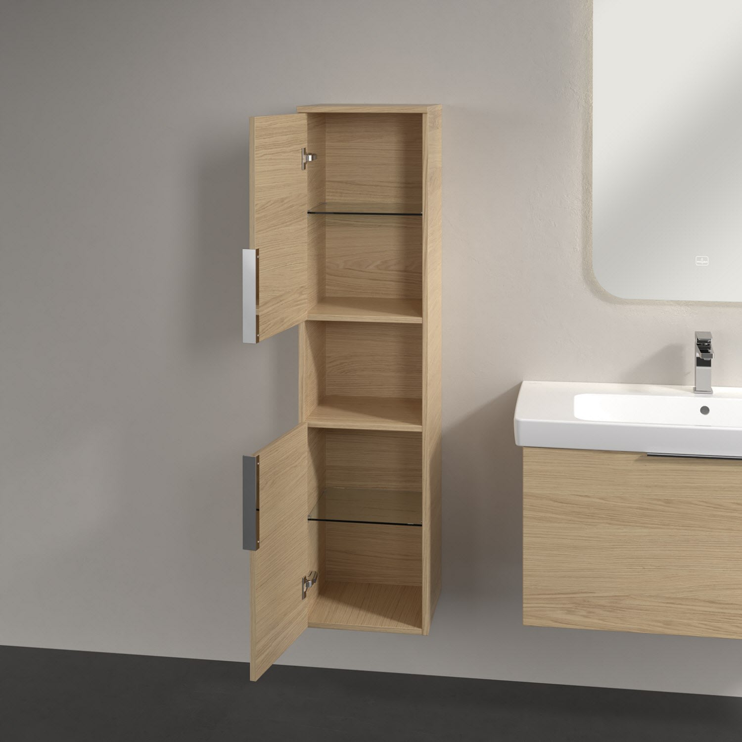 Villeroy & Boch Architectura Hochschrank 35 x 140 cm, 2 Türen Anschlag links und 1 offenes Fach