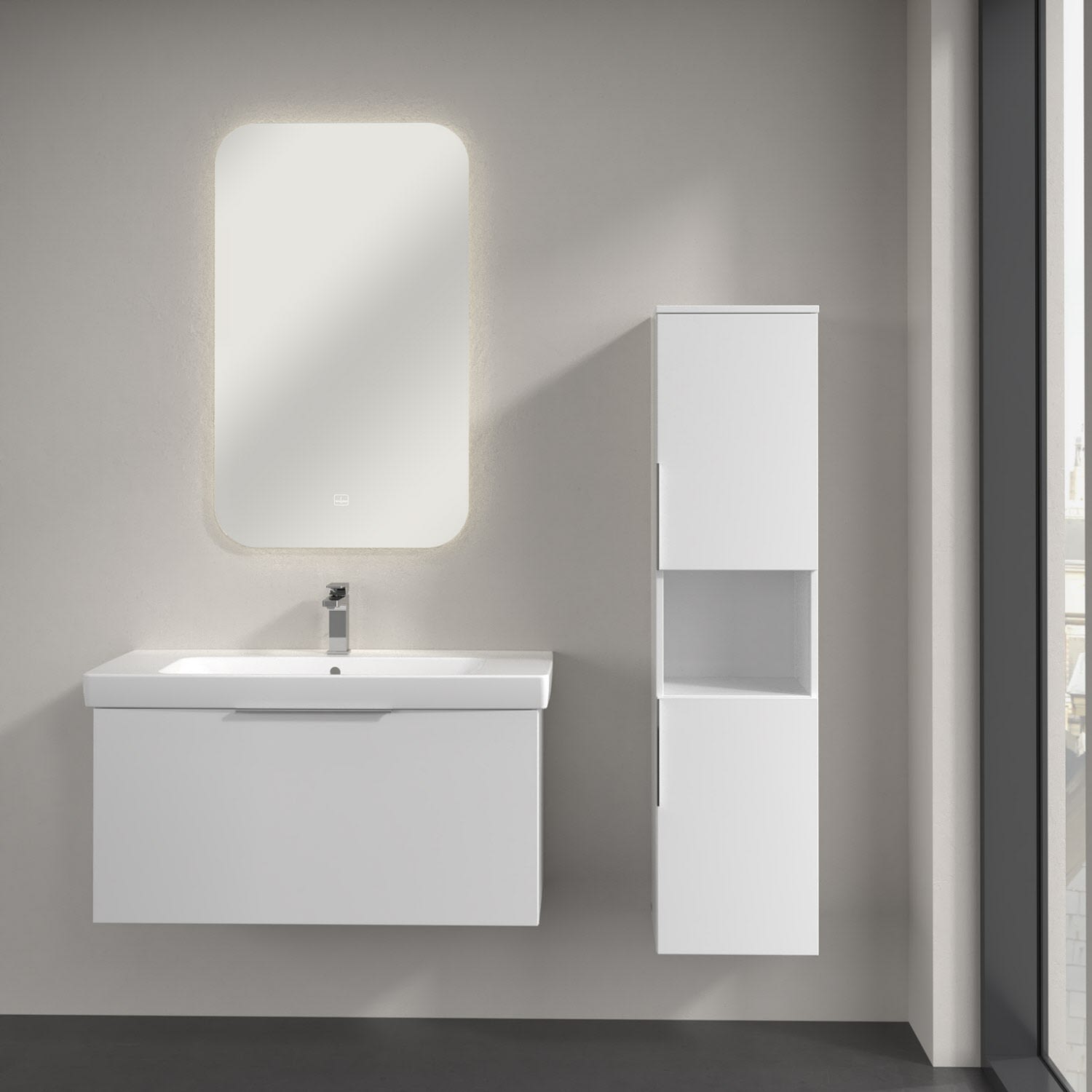 Villeroy & Boch Architectura Hochschrank 35 x 140 cm, 2 Türen Anschlag rechts und 1 offenes Fach