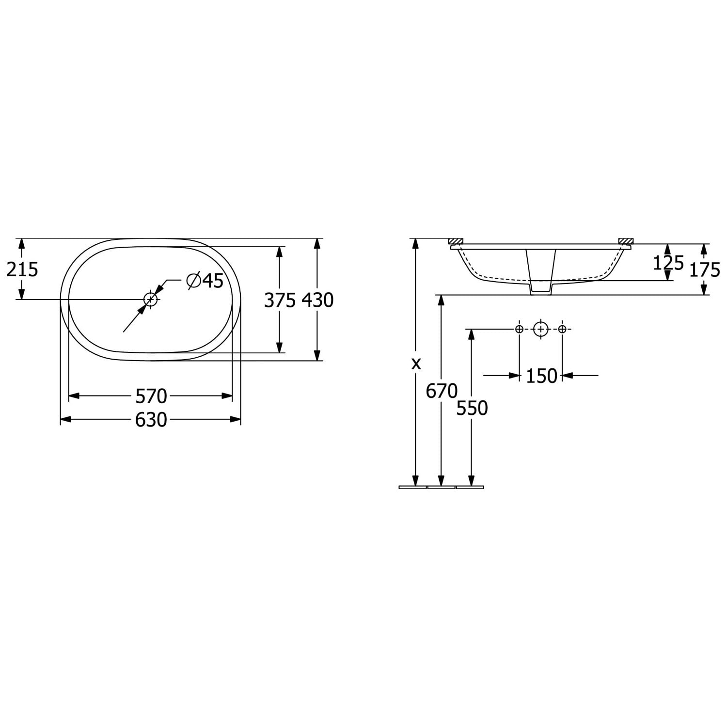 Villeroy & Boch Architectura Unterbauwaschbecken 63 x 43 cm oval, ohne Überlauf, ungeschliffen