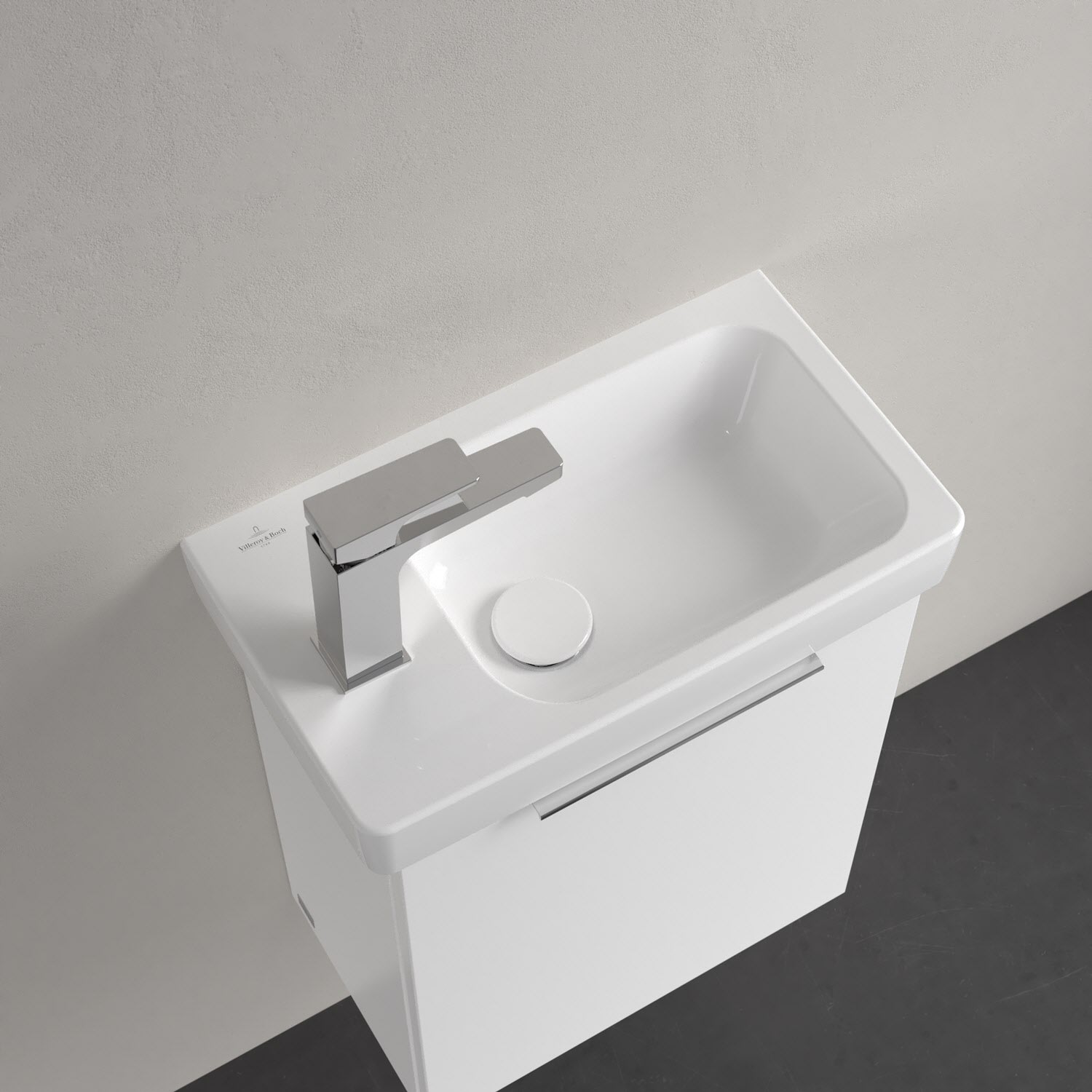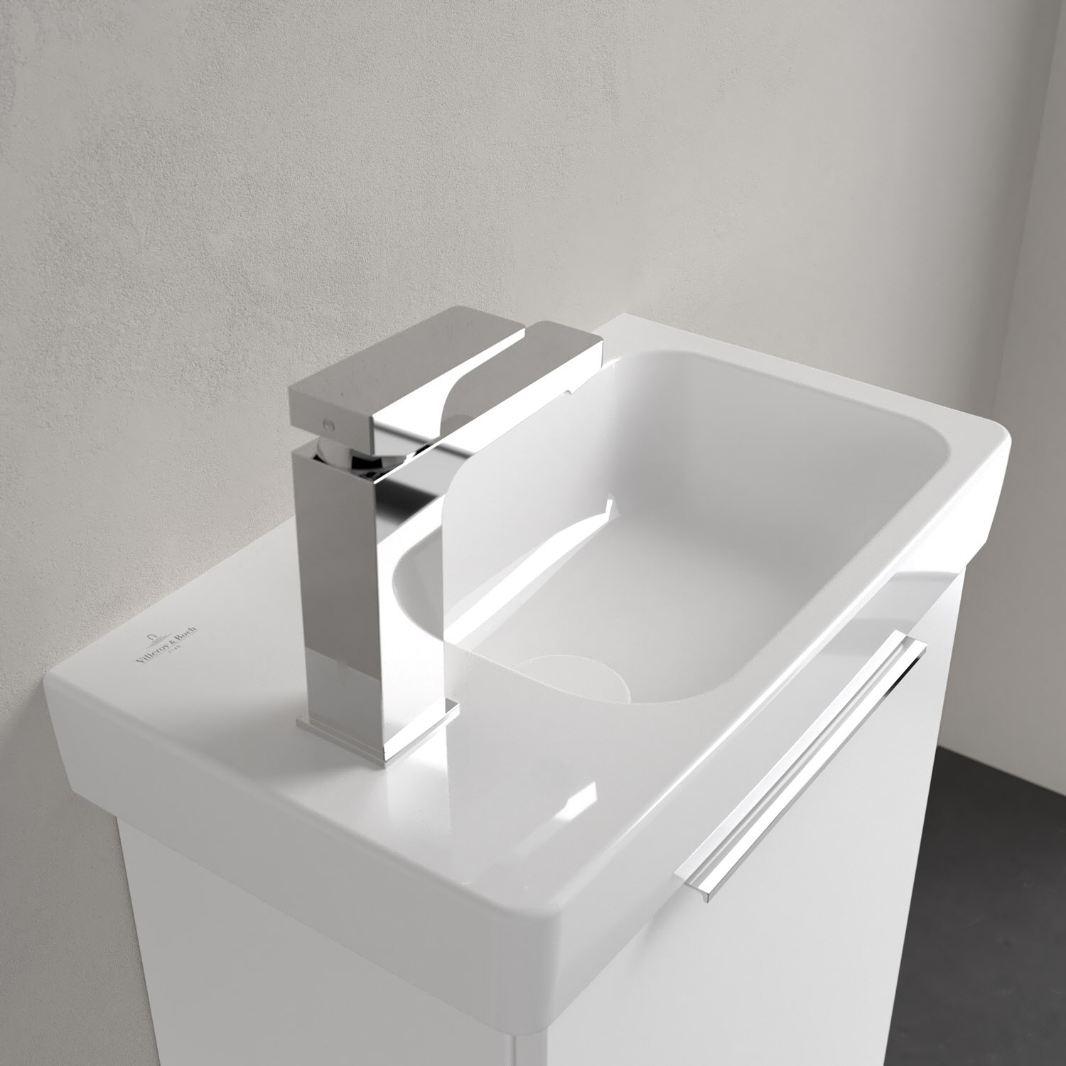 Das rechteckige Handwaschbecken aus der Kollektion Architectura von Villeroy & Boch verkörpert zeitlose Eleganz und praktische Anwendung in einem. Dank seiner überschaubaren Größe eignet es sich bestens für den Einbau in kleinen Bädern oder Gästebädern. Das Waschbecken zeichnet sich durch ein seitlich platziertes Hahnloch aus, was es optisch zu einem Hingucker macht. Dort kann optimal eine Architectura Armatur installiert werden – ein ideales Match. Das Handwaschbecken wird aus hochwertiger Sanitärkeramik hergestellt, wodurch es eine außergewöhnliche Beständigkeit gegenüber Kratzern und Stößen aufweist. Für langanhaltende Sauberkeit punktet die Oberfläche zusätzlich mit ihrer schmutzabweisenden Eigenschaft.