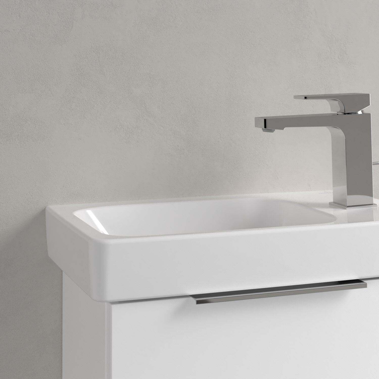 Das rechteckige Handwaschbecken aus der Kollektion Architectura von Villeroy & Boch verkörpert zeitlose Eleganz und praktische Anwendung in einem. Dank seiner überschaubaren Größe eignet es sich bestens für den Einbau in kleinen Bädern oder Gästebädern. Das Waschbecken zeichnet sich durch ein seitlich platziertes Hahnloch aus, was es optisch zu einem Hingucker macht. Dort kann optimal eine Architectura Armatur installiert werden – ein ideales Match. Das Handwaschbecken wird aus hochwertiger Sanitärkeramik hergestellt, wodurch es eine außergewöhnliche Beständigkeit gegenüber Kratzern und Stößen aufweist.