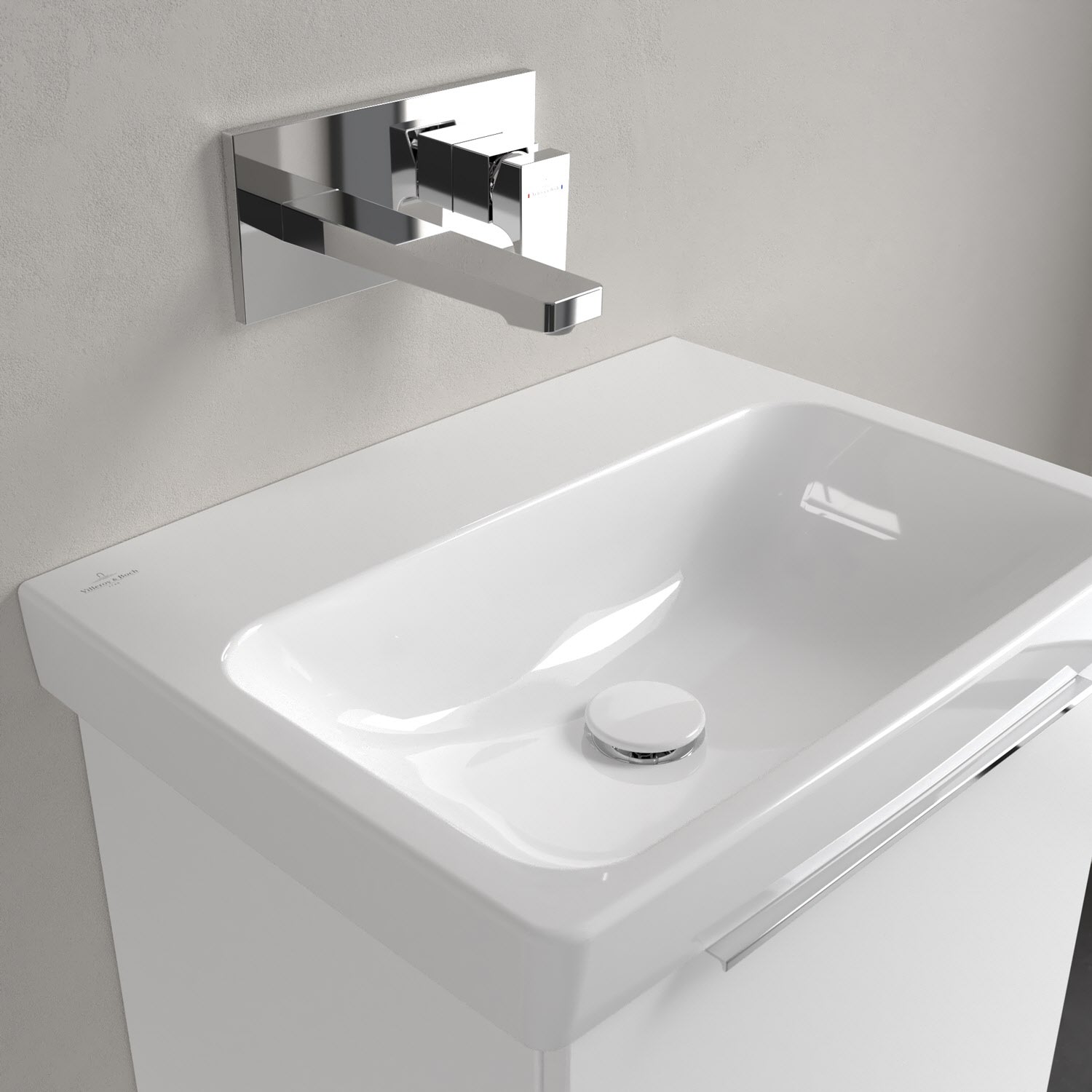 Ein zeitlos schönes Statement: Das rechteckige Waschbecken aus der Architectura Kollektion begeistert mit seinem klaren Design in jeder Hinsicht. Es lässt sich dank seiner minimalistischen Optik mühelos in verschiedene Badeinrichtungsstile integrieren. Auch funktional überzeugt das Waschbecken mit seiner breiten Hahnlochbank für Pflegeprodukte oder Zahnputzbecher. Die Verarbeitung hochwertiger Sanitärkeramik von Villeroy & Boch gewährleistet nicht nur eine einfache Pflege, sondern auch eine langanhaltende Freude an diesem Produkt.