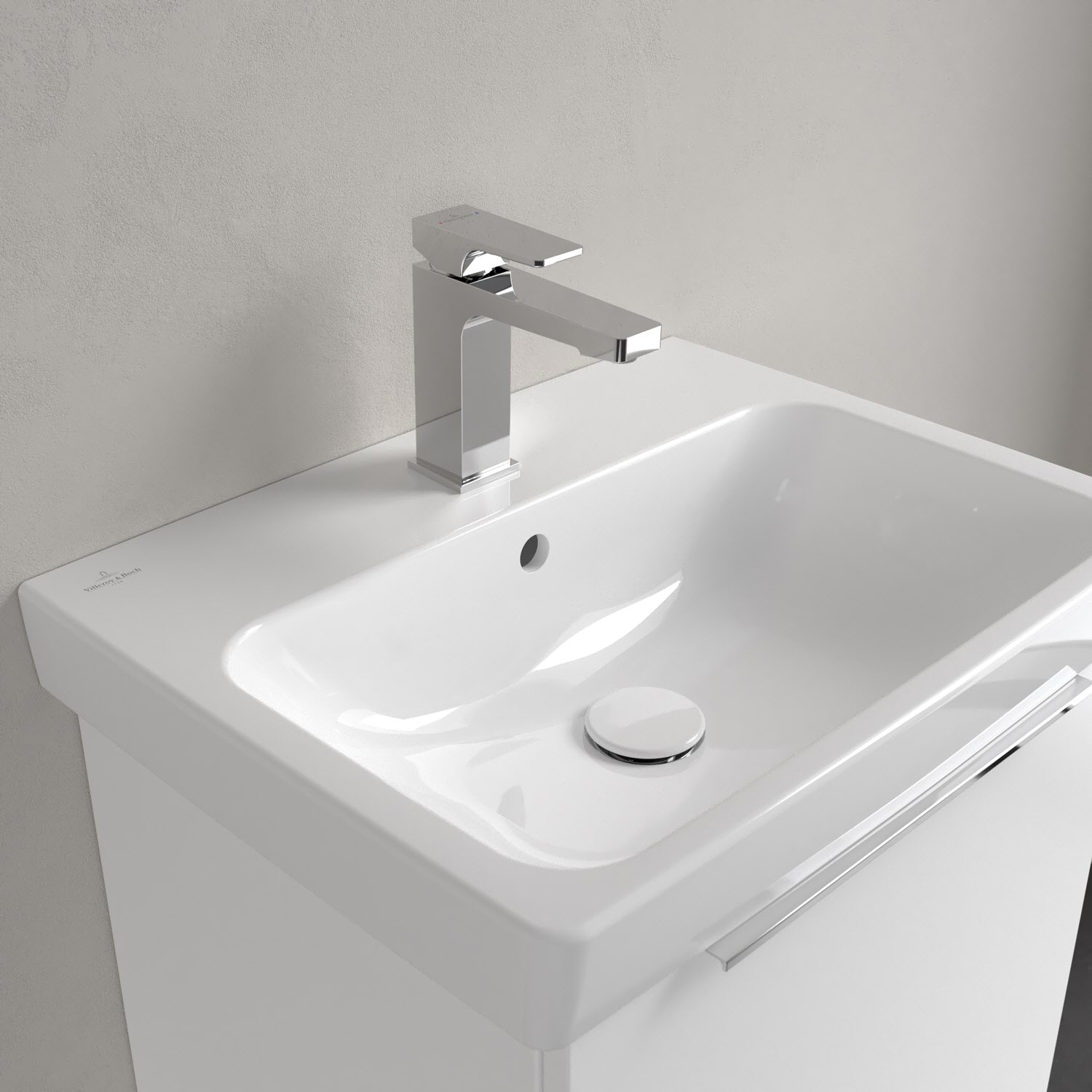 Ein zeitlos schönes Statement: Das rechteckige Waschbecken aus der Architectura Kollektion begeistert mit seinem klaren Design in jeder Hinsicht. Es lässt sich dank seiner minimalistischen Optik mühelos in verschiedene Badeinrichtungsstile integrieren. Auch funktional überzeugt das Waschbecken mit seiner breiten Hahnlochbank für Pflegeprodukte oder Zahnputzbecher. Die Verarbeitung hochwertiger Sanitärkeramik von Villeroy & Boch gewährleistet nicht nur eine einfache Pflege, sondern auch eine langanhaltende Freude an diesem Produkt. Dafür sorgt auch die schmutzabweisende und antibakterielle Oberfläche.