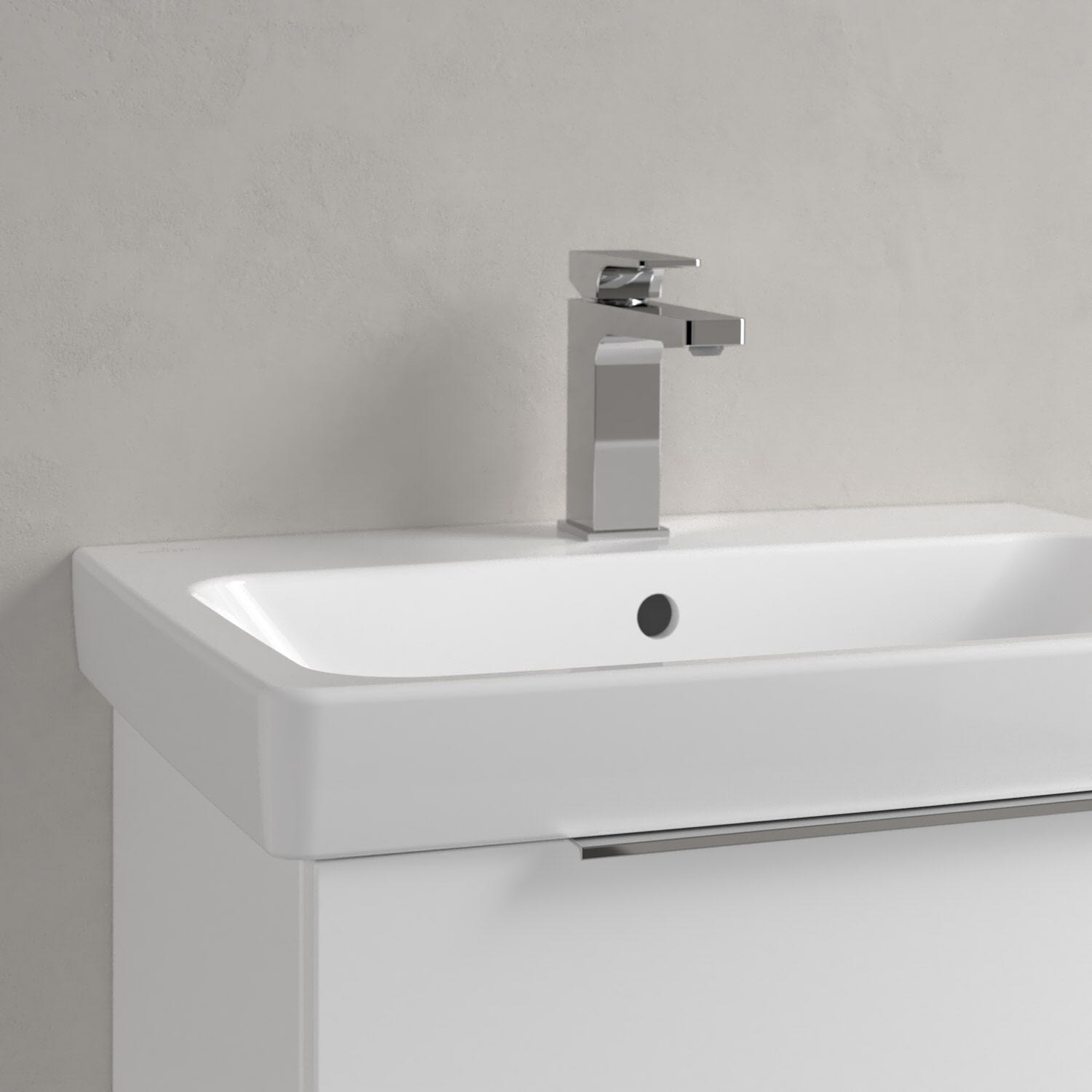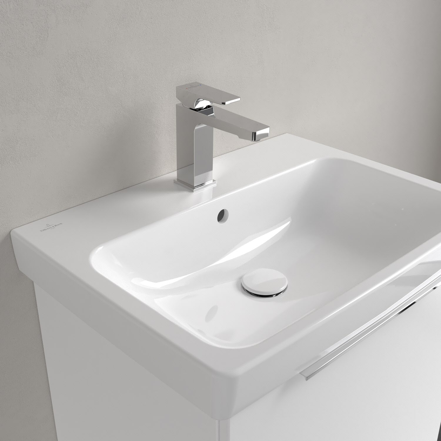 Ein zeitlos schönes Statement: Das rechteckige Waschbecken aus der Architectura Kollektion begeistert mit seinem klaren Design in jeder Hinsicht. Es lässt sich dank seiner minimalistischen Optik mühelos in verschiedene Badeinrichtungsstile integrieren. Auch funktional überzeugt das Waschbecken mit seiner breiten Hahnlochbank für Pflegeprodukte oder Zahnputzbecher. Die Verarbeitung hochwertiger Sanitärkeramik von Villeroy & Boch gewährleistet nicht nur eine einfache Pflege, sondern auch eine langanhaltende Freude an diesem Produkt. Dafür sorgt auch die schmutzabweisende Oberfläche.