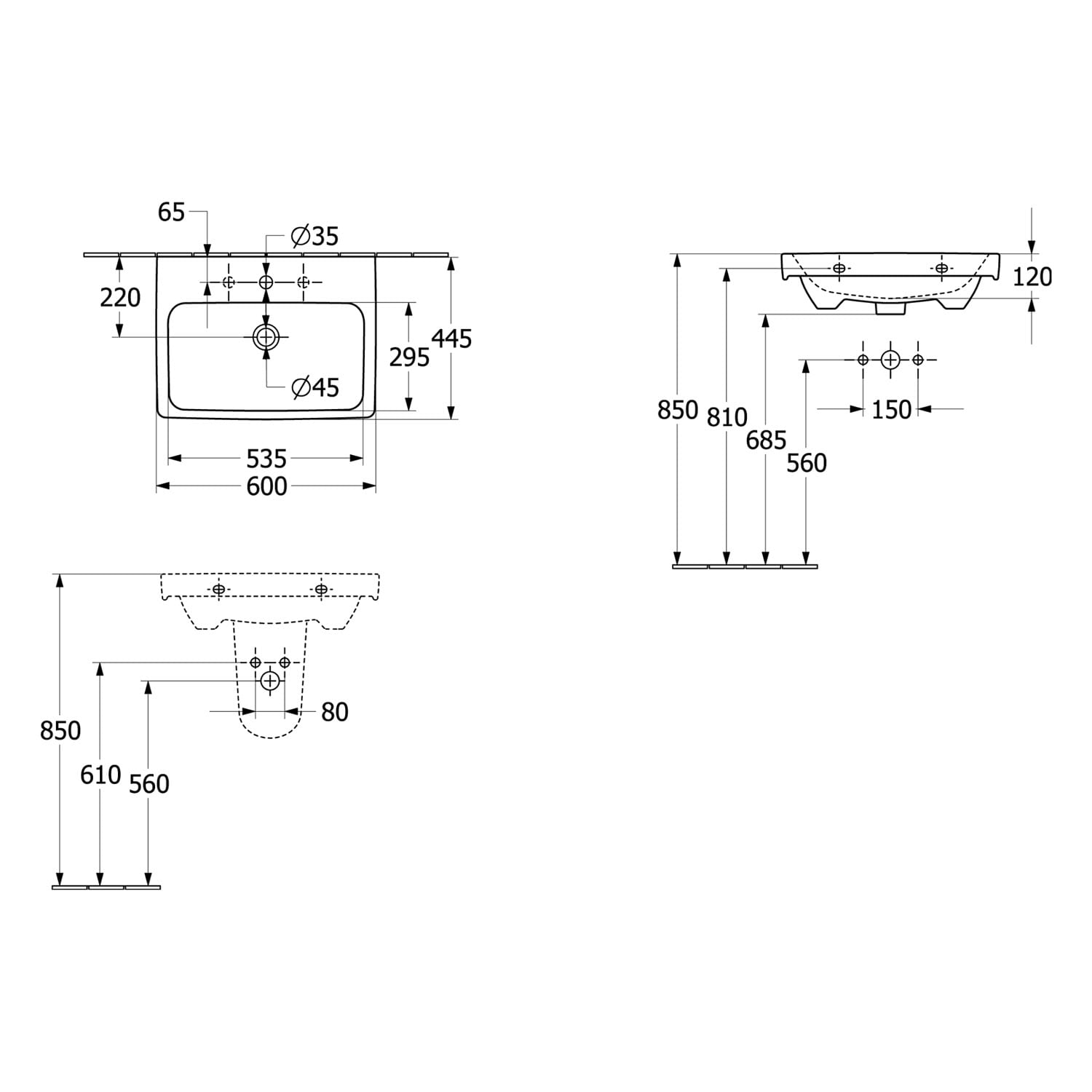 - für 3-Loch-Armatur geeignet (mittleres Hahnloch durchgestochen, 2 weitere Hahnlöcher vorgestochen)