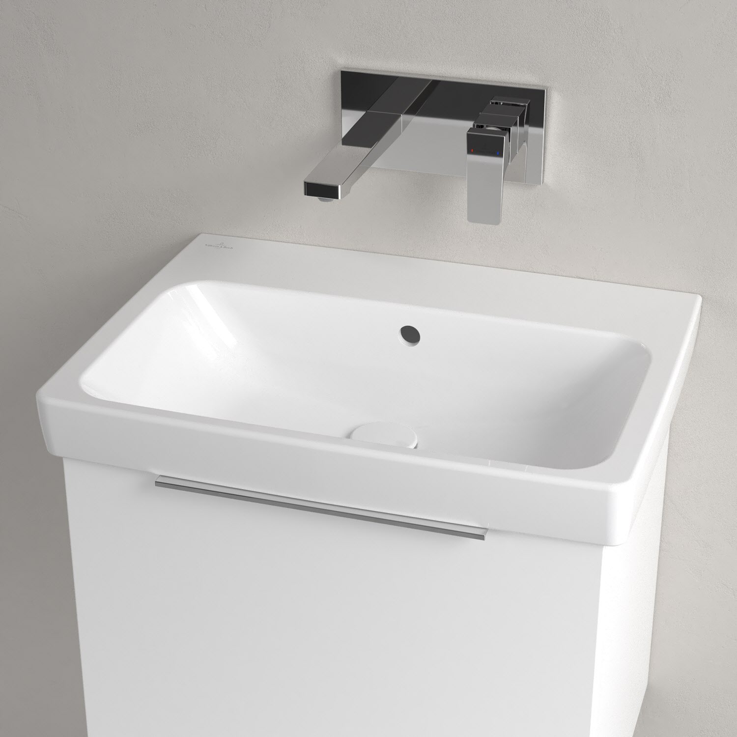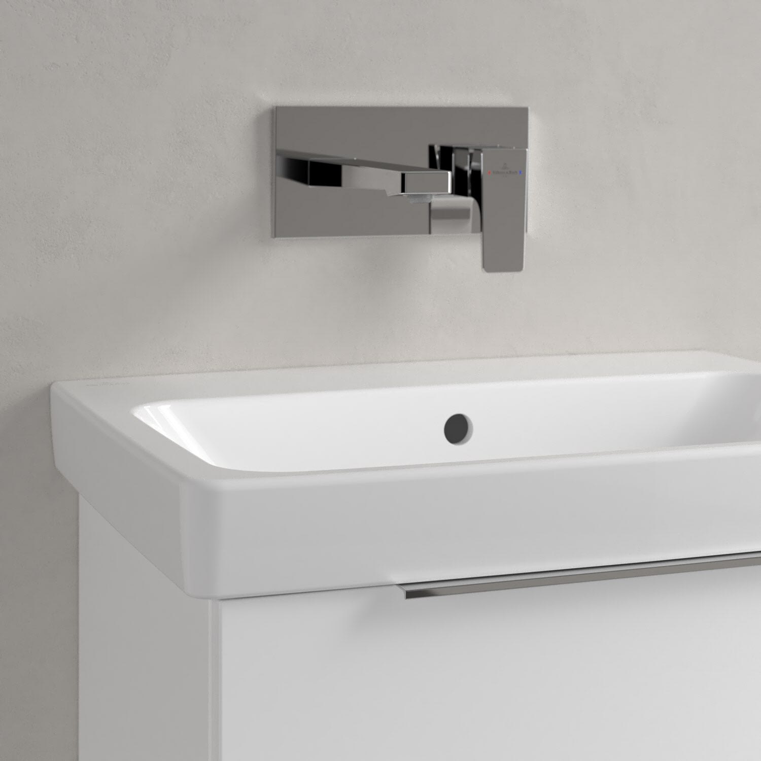 Ein zeitlos schönes Statement: Das rechteckige Waschbecken aus der Architectura Kollektion begeistert mit seinem klaren Design in jeder Hinsicht. Es lässt sich dank seiner minimalistischen Optik mühelos in verschiedene Badeinrichtungsstile integrieren. Auch funktional überzeugt das Waschbecken mit seiner breiten Hahnlochbank für Pflegeprodukte oder Zahnputzbecher. Die Verarbeitung hochwertiger Sanitärkeramik von Villeroy & Boch gewährleistet nicht nur eine einfache Pflege, sondern auch eine langanhaltende Freude an diesem Produkt. Dafür sorgt auch die schmutzabweisende und antibakterielle Oberfläche.