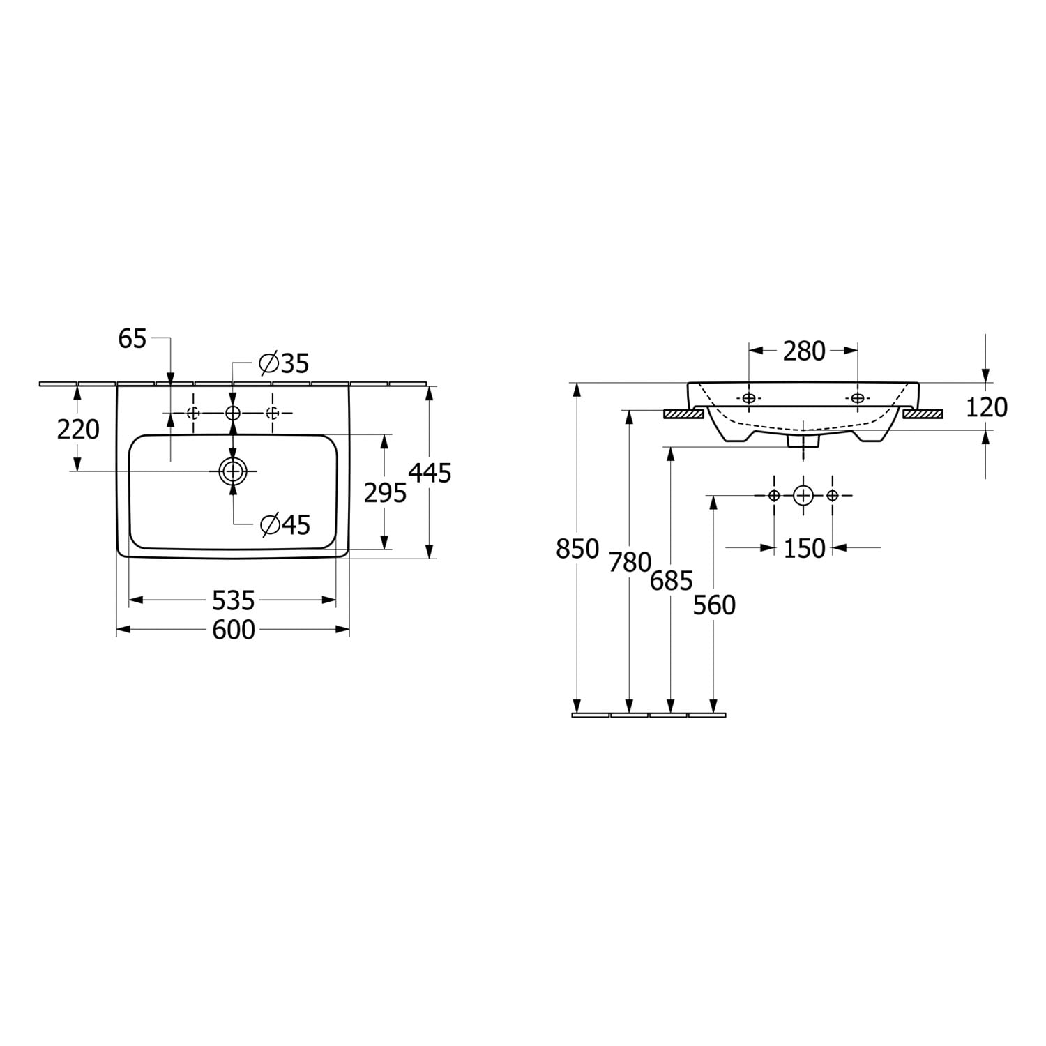 Villeroy & Boch Architectura Waschbecken 60 x 44,5 cm, ohne Überlauf