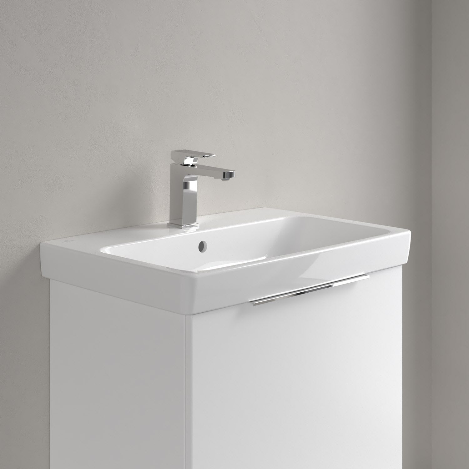 Ein zeitlos schönes Statement: Das rechteckige Waschbecken aus der Architectura Kollektion begeistert mit seinem klaren Design in jeder Hinsicht. Es lässt sich dank seiner minimalistischen Optik mühelos in verschiedene Badeinrichtungsstile integrieren. Auch funktional überzeugt das Waschbecken mit seiner breiten Hahnlochbank für Pflegeprodukte oder Zahnputzbecher. Die Verarbeitung hochwertiger Sanitärkeramik von Villeroy & Boch gewährleistet nicht nur eine einfache Pflege, sondern auch eine langanhaltende Freude an diesem Produkt. Dafür sorgt auch die schmutzabweisende Oberfläche.