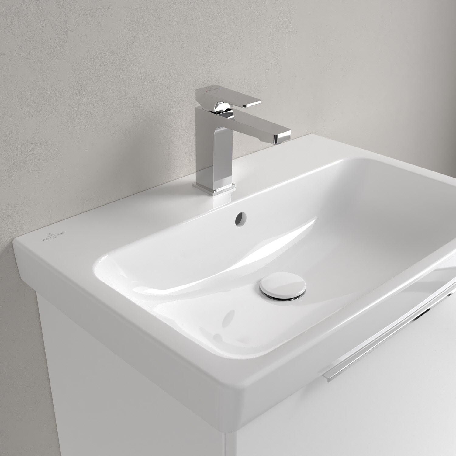 Ein zeitlos schönes Statement: Das rechteckige Waschbecken aus der Architectura Kollektion begeistert mit seinem klaren Design in jeder Hinsicht. Es lässt sich dank seiner minimalistischen Optik mühelos in verschiedene Badeinrichtungsstile integrieren. Auch funktional überzeugt das Waschbecken mit seiner breiten Hahnlochbank für Pflegeprodukte oder Zahnputzbecher. Die Verarbeitung hochwertiger Sanitärkeramik von Villeroy & Boch gewährleistet nicht nur eine einfache Pflege, sondern auch eine langanhaltende Freude an diesem Produkt. Dafür sorgt auch die schmutzabweisende und antibakterielle Oberfläche.