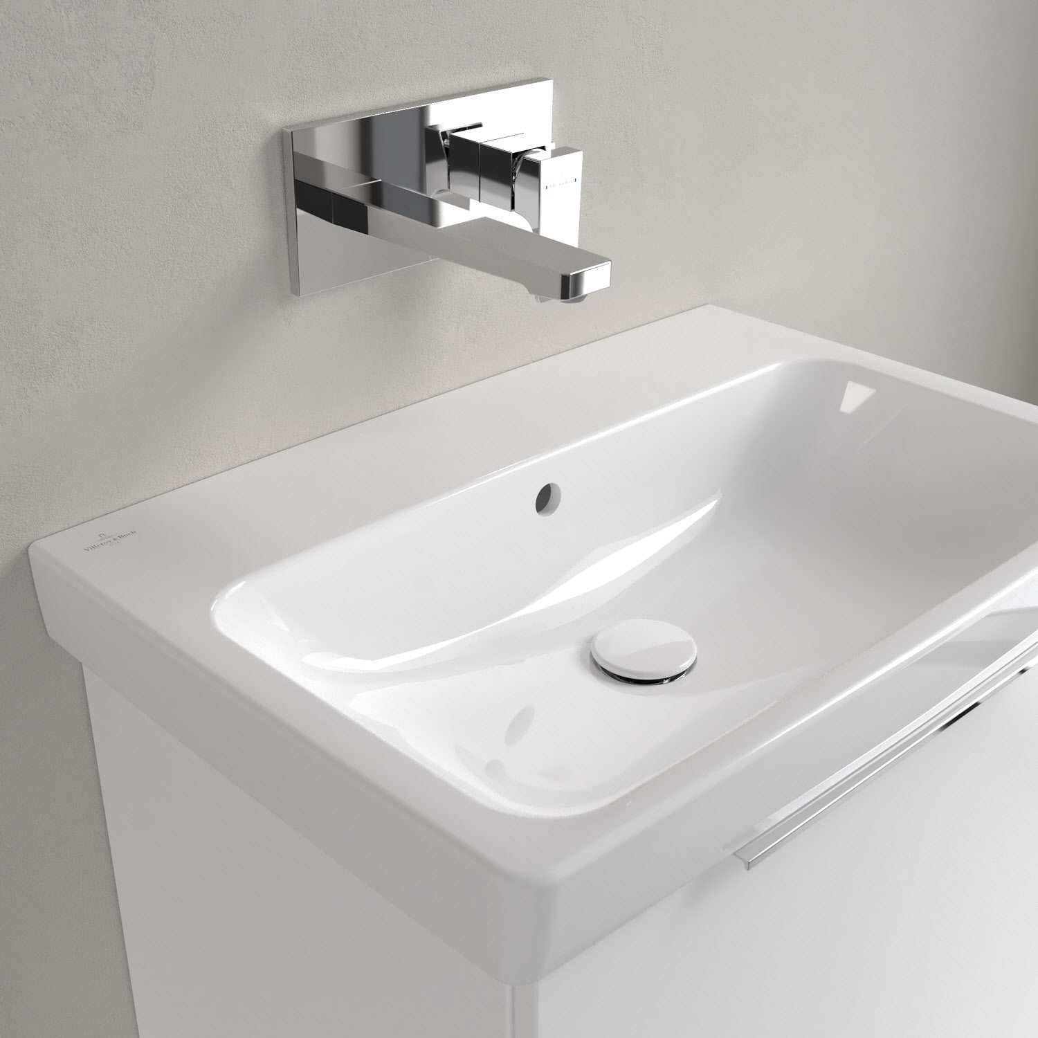 Ein zeitlos schönes Statement: Das rechteckige Waschbecken aus der Architectura Kollektion begeistert mit seinem klaren Design in jeder Hinsicht. Es lässt sich dank seiner minimalistischen Optik mühelos in verschiedene Badeinrichtungsstile integrieren. Auch funktional überzeugt das Waschbecken mit seiner breiten Hahnlochbank für Pflegeprodukte oder Zahnputzbecher. Die Verarbeitung hochwertiger Sanitärkeramik von Villeroy & Boch gewährleistet nicht nur eine einfache Pflege, sondern auch eine langanhaltende Freude an diesem Produkt. Dafür sorgt auch die schmutzabweisende und antibakterielle Oberfläche.