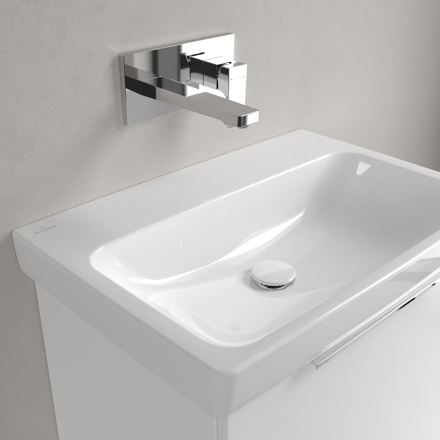 Ein zeitlos schönes Statement: Das rechteckige Waschbecken aus der Architectura Kollektion begeistert mit seinem klaren Design in jeder Hinsicht. Es lässt sich dank seiner minimalistischen Optik mühelos in verschiedene Badeinrichtungsstile integrieren. Auch funktional überzeugt das Waschbecken mit seiner breiten Hahnlochbank für Pflegeprodukte oder Zahnputzbecher. Die Verarbeitung hochwertiger Sanitärkeramik von Villeroy & Boch gewährleistet nicht nur eine einfache Pflege, sondern auch eine langanhaltende Freude an diesem Produkt.