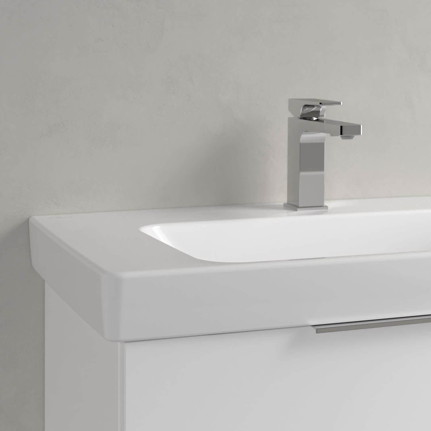 Ein zeitlos schönes Statement: Das rechteckige Waschbecken aus der Architectura Kollektion begeistert mit seinem klaren Design in jeder Hinsicht. Es lässt sich dank seiner minimalistischen Optik mühelos in verschiedene Badeinrichtungsstile integrieren. Auch funktional überzeugt das Waschbecken, denn auf seiner breiten Hahnlochbank finden Pflegeprodukte oder Zahnputzbecher Platz. Die beiden seitlichen Ablagen können für Bürste, Rasierer und Co. verwendet werden. Dank der Verarbeitung hochwertiger Sanitärkeramik von Villeroy & Boch ist nicht nur die Pflege kinderleicht, sondern auch eine langanhaltende Freude an diesem Produkt garantiert.