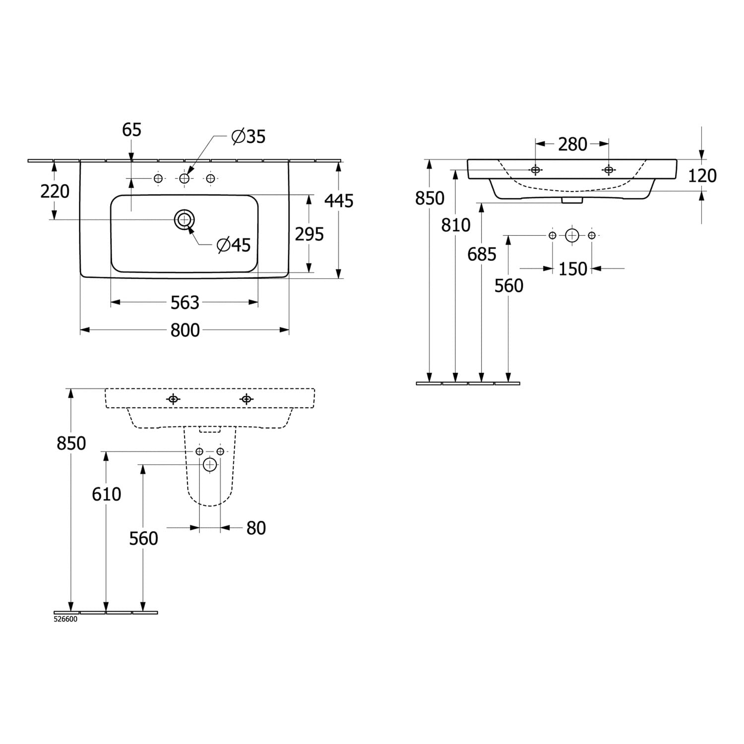 Villeroy & Boch Architectura Waschbecken 80 x 45,5 cm, mit Überlauf