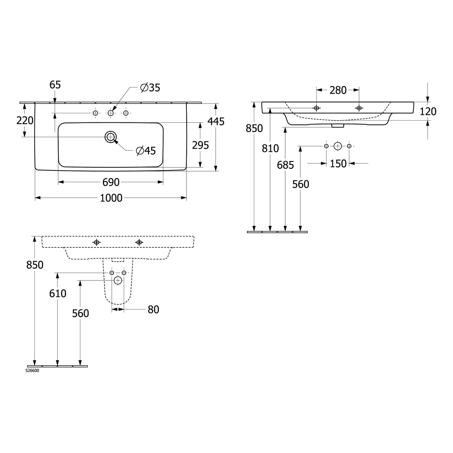 Villeroy & Boch Architectura Waschbecken 100 x 46 cm, ohne Überlauf