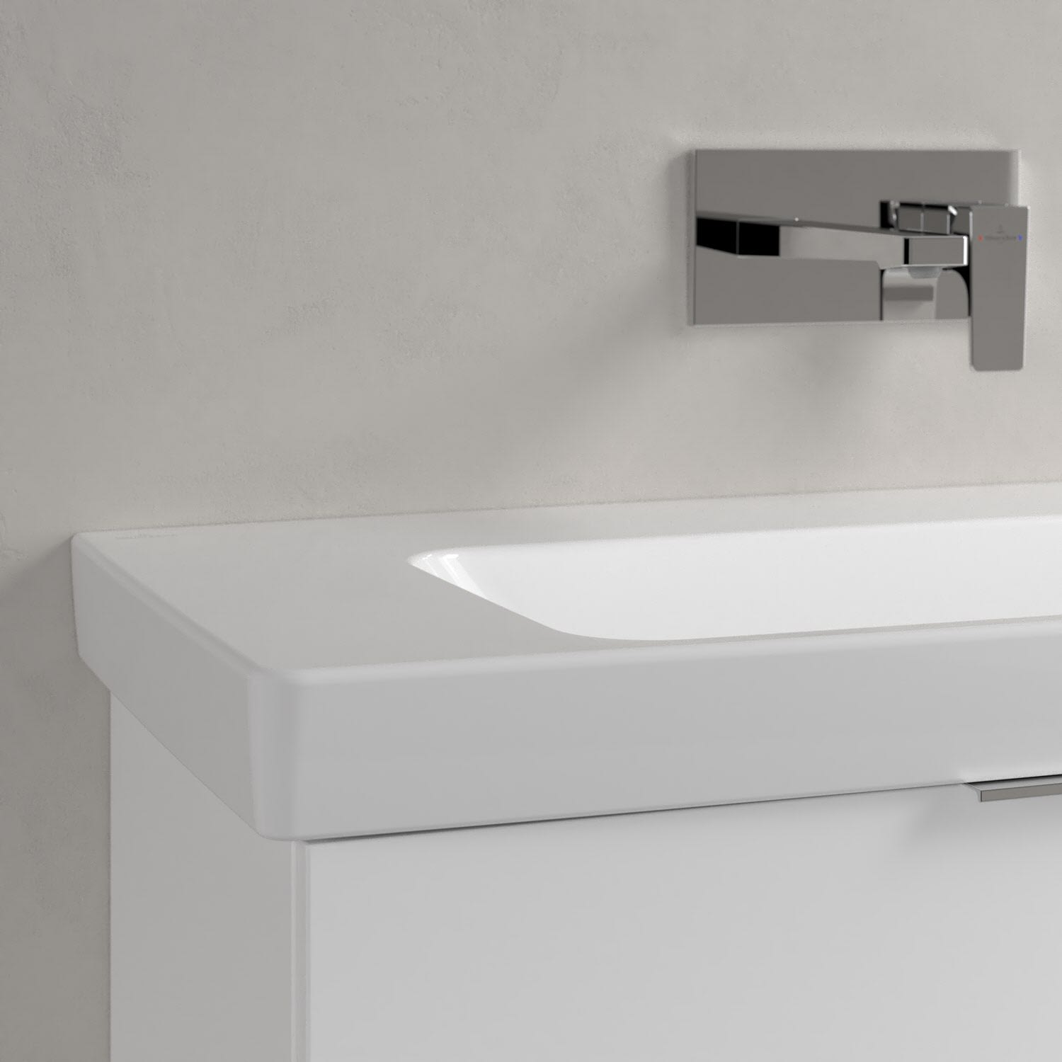 Ein zeitlos schönes Statement: Das rechteckige Waschbecken aus der Architectura Kollektion begeistert mit seinem klaren Design in jeder Hinsicht. Es lässt sich dank seiner minimalistischen Optik mühelos in verschiedene Badeinrichtungsstile integrieren. Auch funktional überzeugt das Waschbecken, denn auf seiner breiten Hahnlochbank finden Pflegeprodukte oder Zahnputzbecher Platz. Die beiden seitlichen Ablagen können für Bürste, Rasierer und Co. verwendet werden. Dank der Verarbeitung hochwertiger Sanitärkeramik von Villeroy & Boch ist nicht nur die Pflege kinderleicht, sondern auch eine langanhaltende Freude an diesem Produkt garantiert. Dafür sorgt auch die schmutzabweisende Oberfläche.
