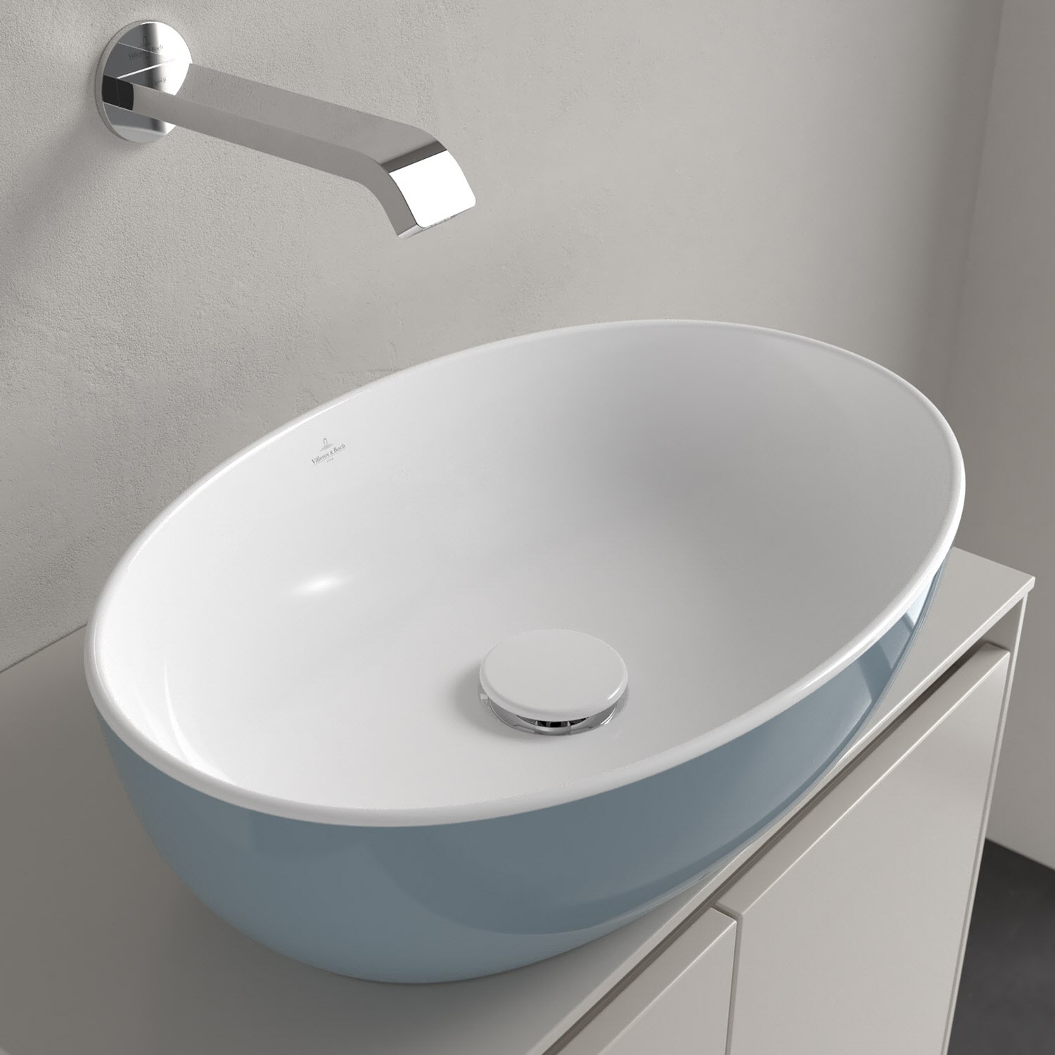 Ein Must Have für kleine Bäder und Gastbäder dank seiner kompakten Größe: der ovale Aufsatzwaschtisch der Kollektion Artis! Gefertigt aus dem innovativen Werkstoff TitanCeram besticht der Waschtisch durch schlichte Ästhetik und elegantes Design. Villeroy & Boch ermöglicht damit feine Konturen und eine besonders dünne Wandstärke, die dennoch mit außergewöhnlicher Robustheit und Stabilität überzeugt. Die großzügige Beckentiefe macht das Händewaschen äußerst komfortabel und schützt den umliegenden Bereich vor unerwünschten Wasserspritzern. Die moderne BiColour-Optik des Waschbeckens eignet sich perfekt, um designstarke Akzente im Badezimmer zu setzen. Dabei ist die Außenseite farbig gestaltet, während die Innenseite ganz klassisch Weiß gehalten ist. Entwickelt wurde das stilvolle Farbkonzept von der renommierten Designerin Gesa Hansen.