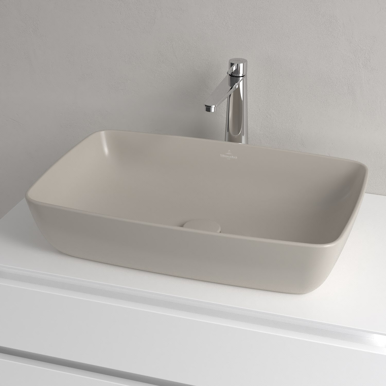 Das rechteckige Aufsatzwaschbecken der Kollektion Artis von Villeroy & Boch beeindruckt mit besonders dünner Wandstärke und feinen Konturen dank innovativem TitanCeram – Ein Werkstoff, der das Waschbecken auch mit schmal gearbeiteten Rändern besonders widerstandsfähig und stabil macht. Überzeugend ist auch die Beckentiefe von 10 cm, die das Händewaschen besonders bequem macht und den umliegenden Waschplatz vor unerwünschten Wasserspritzern schützt. Beschichtet mit der schmutzabweisenden Oberfläche wird die Reinigung zum wahren Kinderspiel. Die moderne vollflächige Matt-Optik eignet sich perfekt, um designstarke Akzente zu setzen. Und mit den passenden Möbeln der Kollektionen Legato oder Finion wird der Waschplatz zum echten Highlight im Badezimmer.