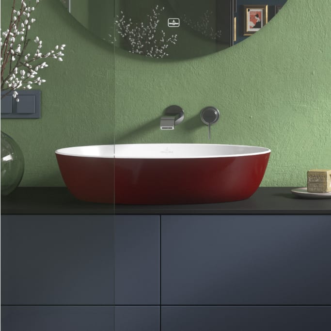 Das ovale Aufsatzwaschbecken der Kollektion Artis von Villeroy & Boch beeindruckt mit besonders dünner Wandstärke und feinen Konturen dank innovativem TitanCeram. Ein Werkstoff, der das Waschbecken auch mit schmal gearbeiteten Rändern besonders widerstandsfähig und stabil macht. Überzeugend ist auch die Beckentiefe von 10cm, die das Händewaschen besonders bequem macht und den umliegenden Waschplatz so vor unerwünschten Wasserspritzern schützt. Mit den passenden Möbeln der Kollektionen Legato oder Finion wird Ihr Waschplatz zum echten Highlight im Badezimmer.