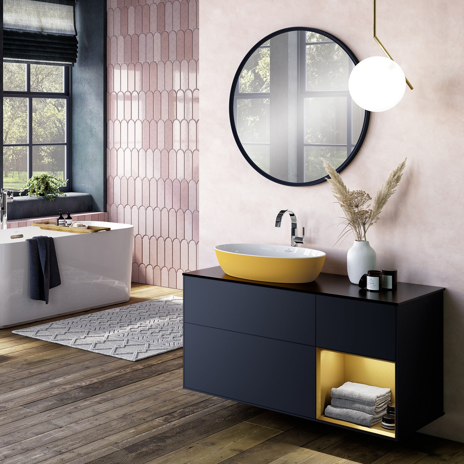 Das ovale Aufsatzwaschbecken der Kollektion Artis von Villeroy & Boch beeindruckt mit besonders dünner Wandstärke und feinen Konturen dank innovativem TitanCeram. Ein Werkstoff, der das Waschbecken auch mit schmal gearbeiteten Rändern besonders widerstandsfähig und stabil macht. Überzeugend ist auch die Beckentiefe von 10cm, die das Händewaschen besonders bequem macht und den umliegenden Waschplatz so vor unerwünschten Wasserspritzern schützt. Mit den passenden Möbeln der Kollektionen Legato oder Finion wird Ihr Waschplatz zum echten Highlight im Badezimmer.