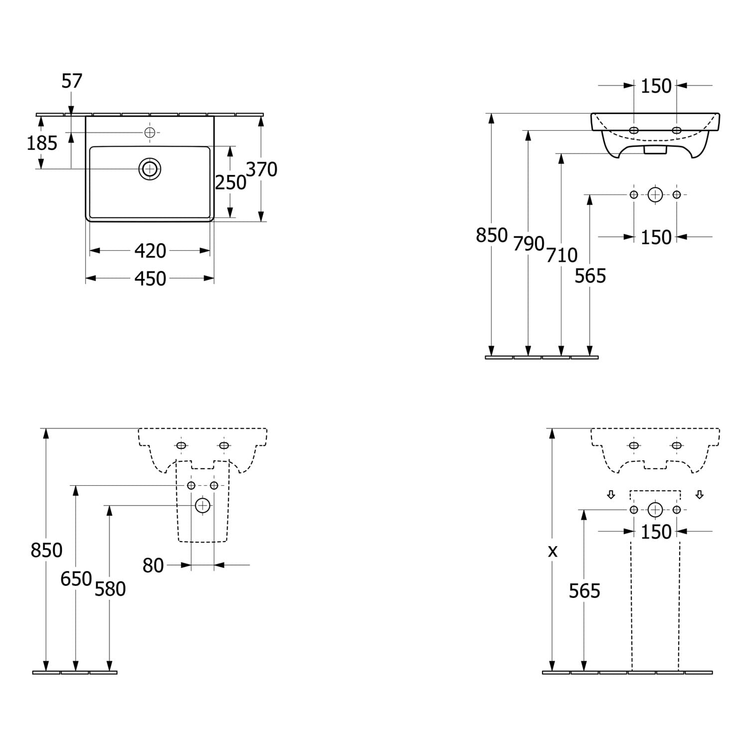 - rechteckiges Waschbecken mit abgerundeten Kanten und schmalem Rand