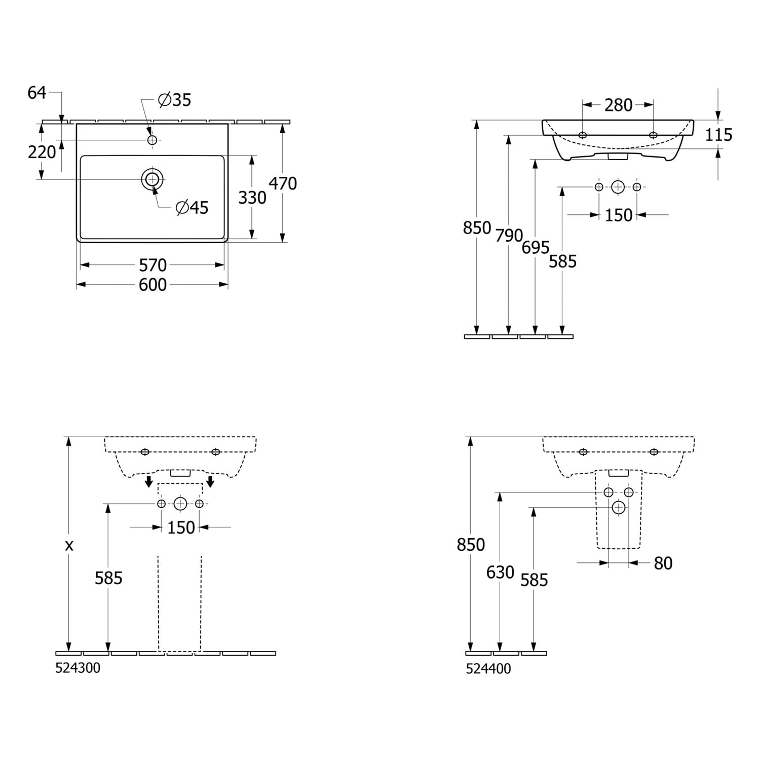 Villeroy & Boch Avento Waschtisch mit Unterschrank 60 cm, 2 Auszüge