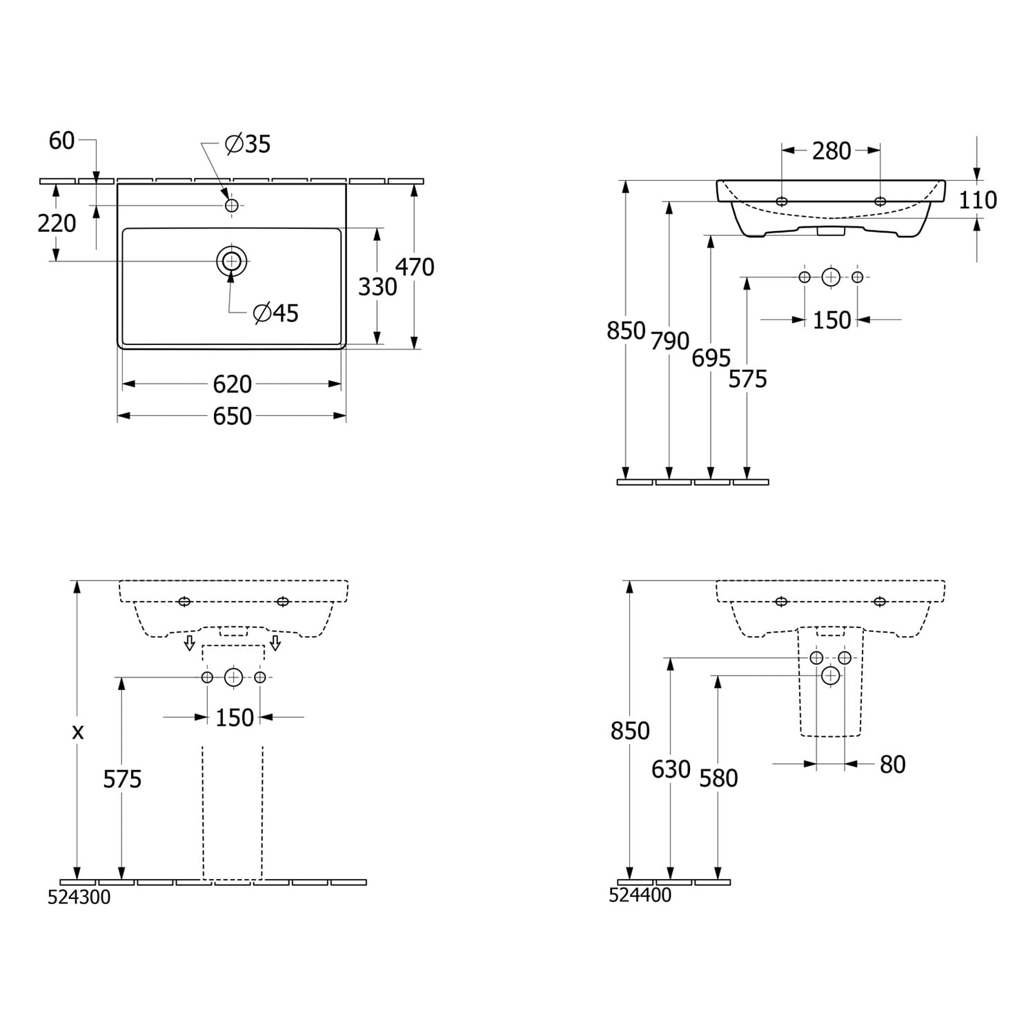 Villeroy & Boch Avento Waschtisch mit Unterschrank 65 cm, 2 Auszüge