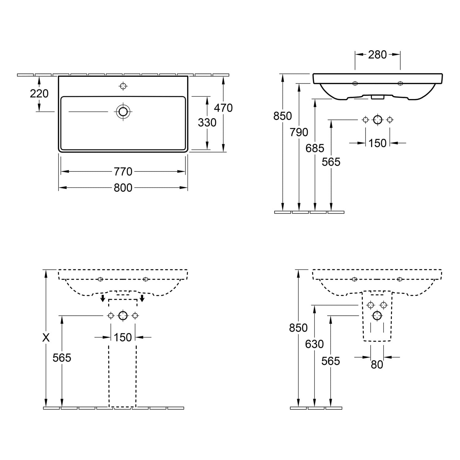 Villeroy & Boch Avento Waschtisch mit Unterschrank 80 cm, 2 Auszüge