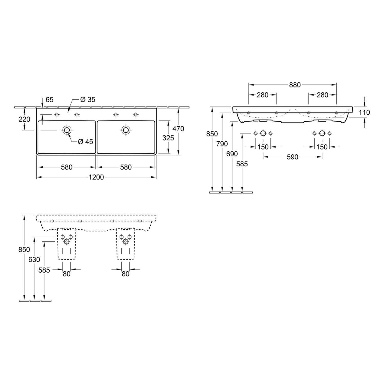 Der rechteckige Doppel-Waschtisch der Kollektion Avento von Villeroy & Boch sticht durch sein frisches Design hervor: abgerundete, rechteckige Form für einen modernen Look. Dank des schmalen Beckenrands profitieren die beiden abgetrennten Bereiche von einem großzügigen Becken und weicher Innenbeckenkontur. Hier geht garantiert kein Spritzer daneben! Obendrein kann die Hahnlochbank als praktische Ablagefläche genutzt werden.