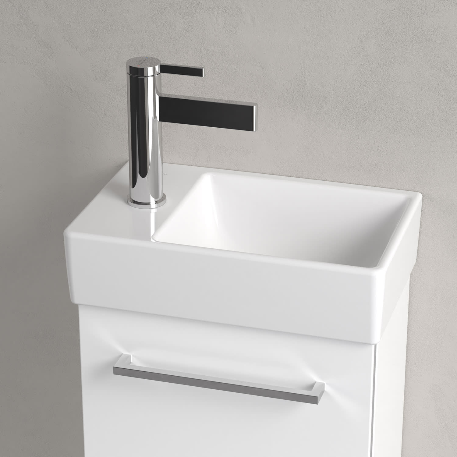 Das rechteckige Handwaschbecken der Kollektion Avento von Villeroy & Boch sticht durch sein frisches Design hervor: abgerundete, rechteckige Form für einen modernen Look. Dank des schmalen Beckenrands profitieren Sie von einem größzügigen Becken mit weicher Innenbeckenkontur. Hier geht garantiert kein Spritzer daneben! Obendrein kann die Hahnlochbank als praktische Ablagefläche genutzt werden. Mit seiner platzsparenden Größe der perfekte Allrounder auch für kleine Bäder!