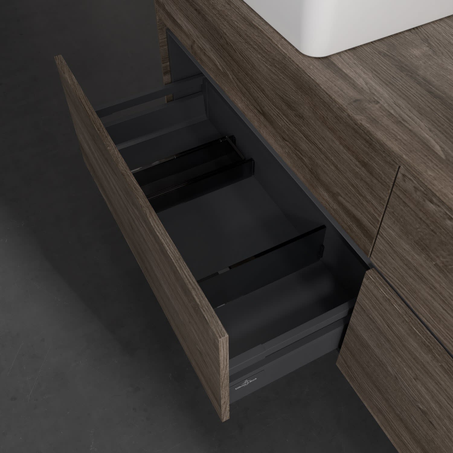 Stauraumwunder im zeitgemäßen Design: Der Villeroy & Boch Waschbeckenunterschrank aus der Collaro Kollektion eignet sich besonders für Familienbäder und bietet genau den Platz, der dort benötigt wird. Eine integrierte Griffleiste sorgt für eine schlichte, moderne Front. Im Inneren bietet das Möbelstück mit vier Auszügen erstaunlich viel Komfort – ermöglicht durch großzügiges Platzangebot und integrierte Antirutschmatten. Variabel setzbare Glasabtrennungen und mitgelieferte Accessory Boxen sorgen für den nötigen Überblick. Dank SoftClosing und Selbsteinzug lassen sich die Auszüge nach der Nutzung lautlos schließen.