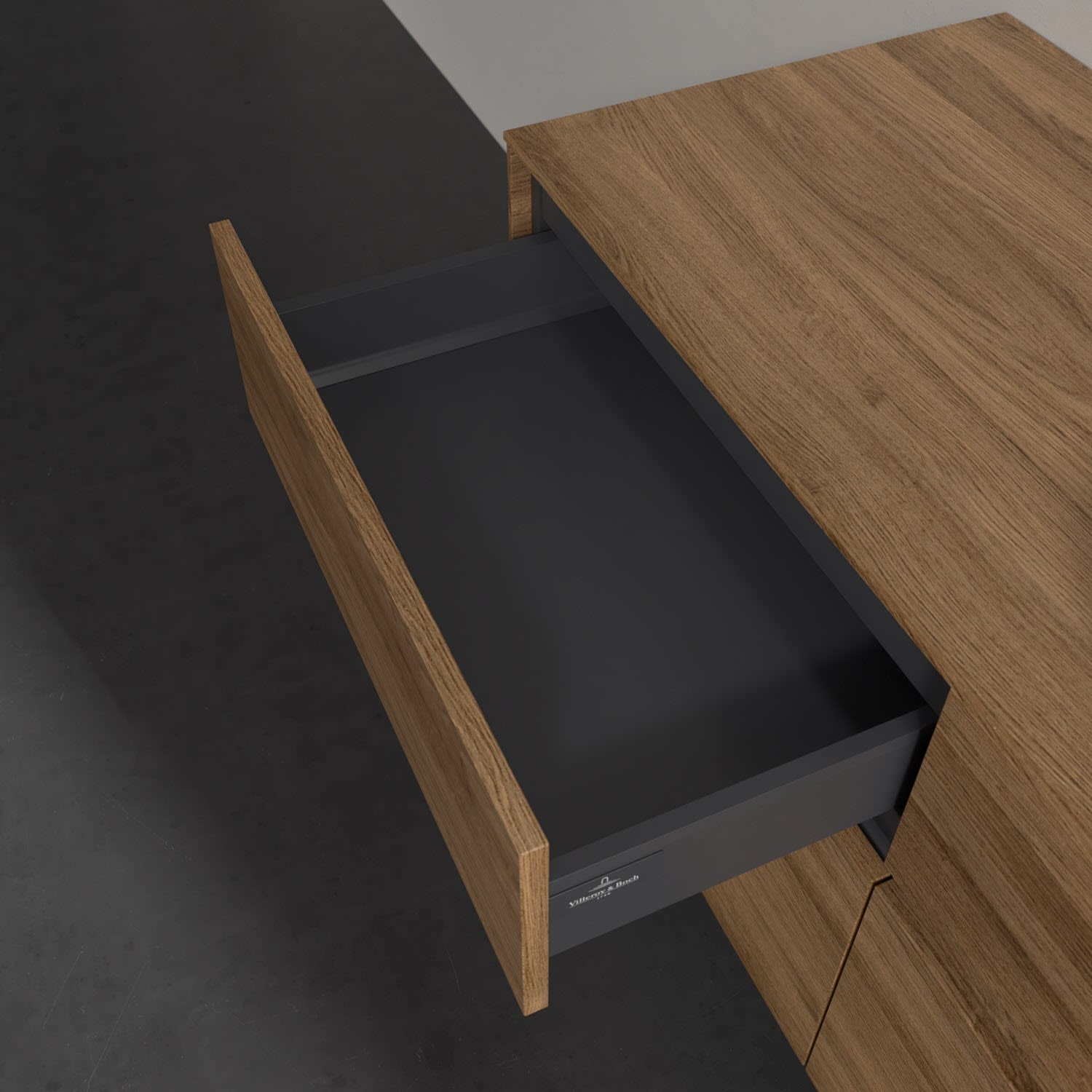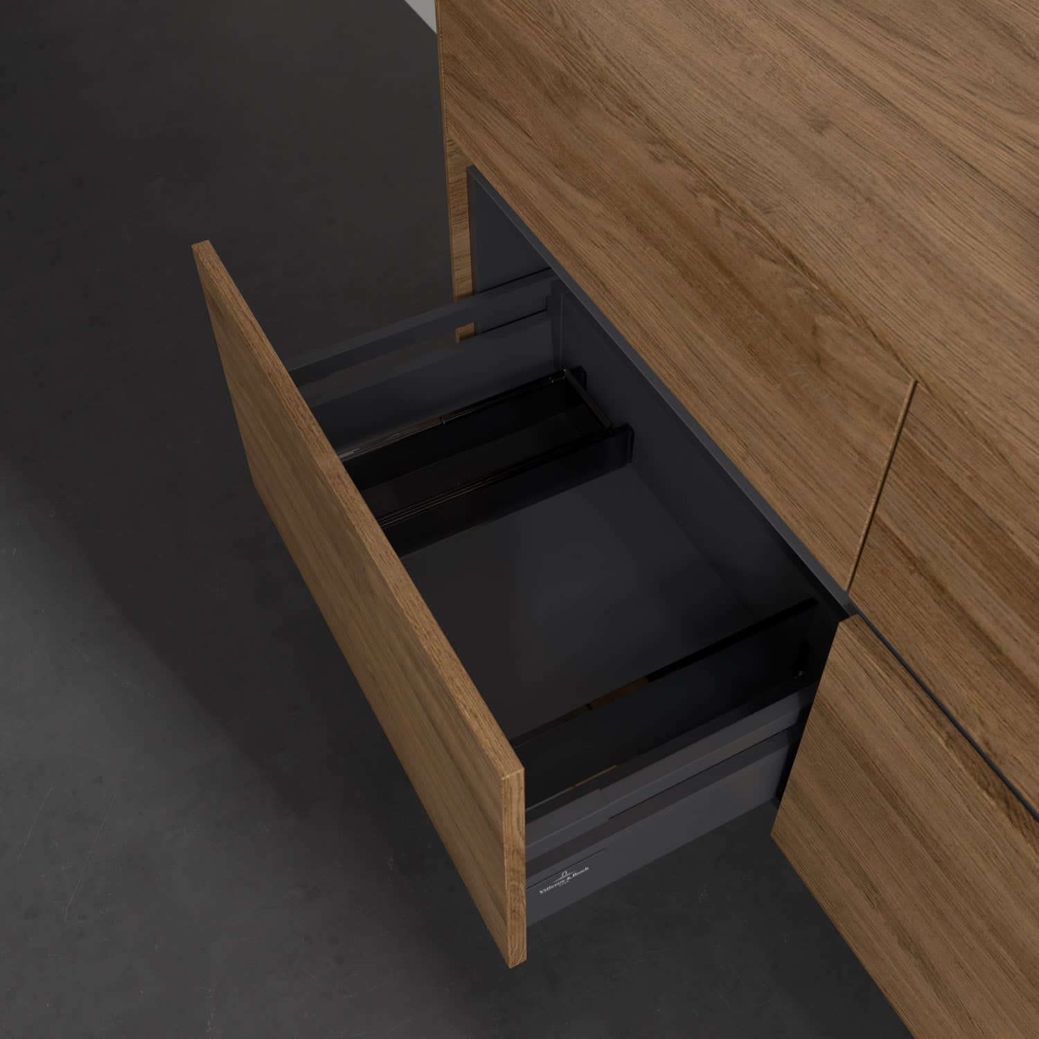 Stauraumwunder im zeitgemäßen Design: Der Villeroy & Boch Waschbeckenunterschrank aus der Collaro Kollektion eignet sich besonders für Familienbäder und bietet genau den Platz, der dort benötigt wird. Eine integrierte Griffleiste sorgt für eine schlichte, moderne Front. Im Inneren bietet das Möbelstück mit vier Auszügen erstaunlich viel Komfort – ermöglicht durch großzügiges Platzangebot und integrierte Antirutschmatten. Variabel setzbare Glasabtrennungen und mitgelieferte Accessory Boxen sorgen für den nötigen Überblick. Dank SoftClosing und Selbsteinzug lassen sich die Auszüge nach der Nutzung lautlos schließen.