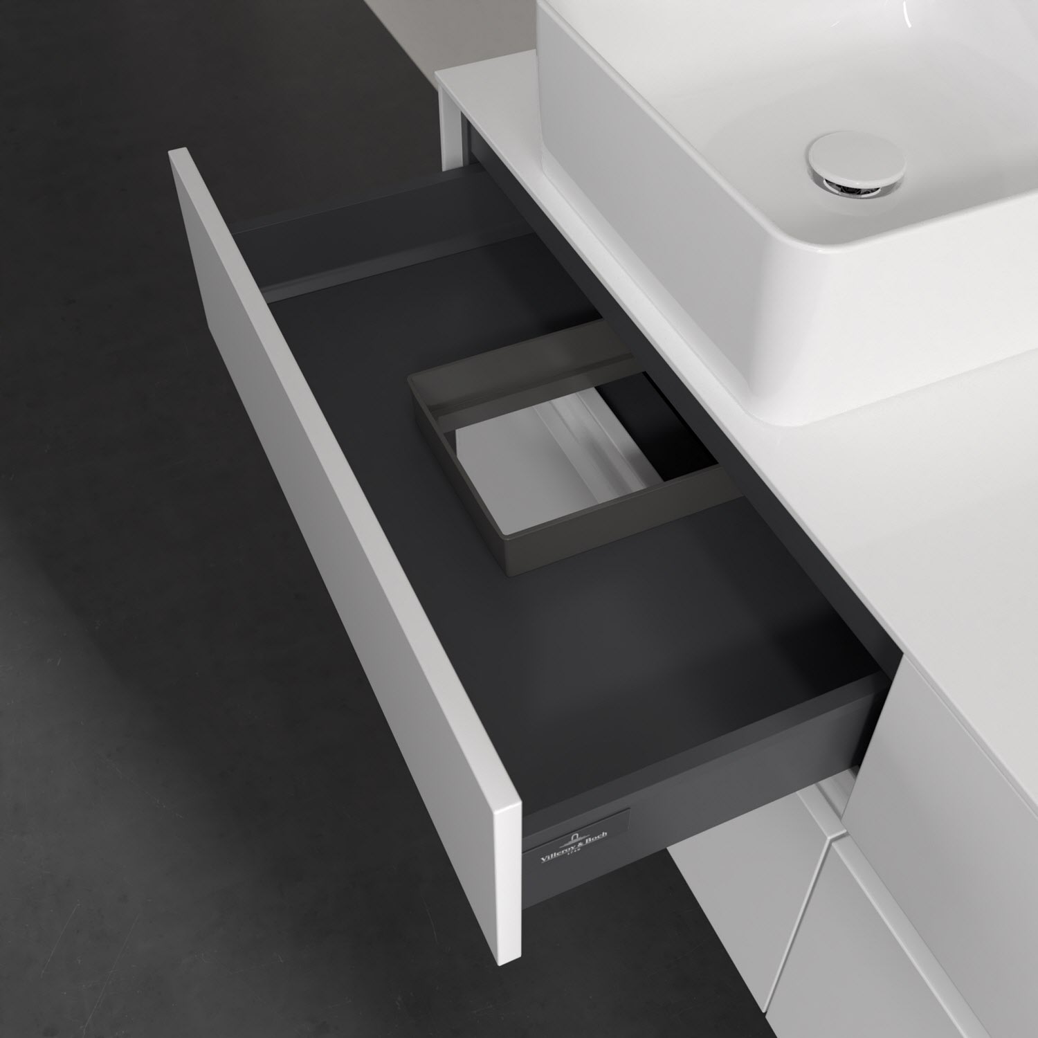 - kein Umfallen oder Verrutschen von Pflegeprodukten in den Schubladen dank rutschhemmendem Boden