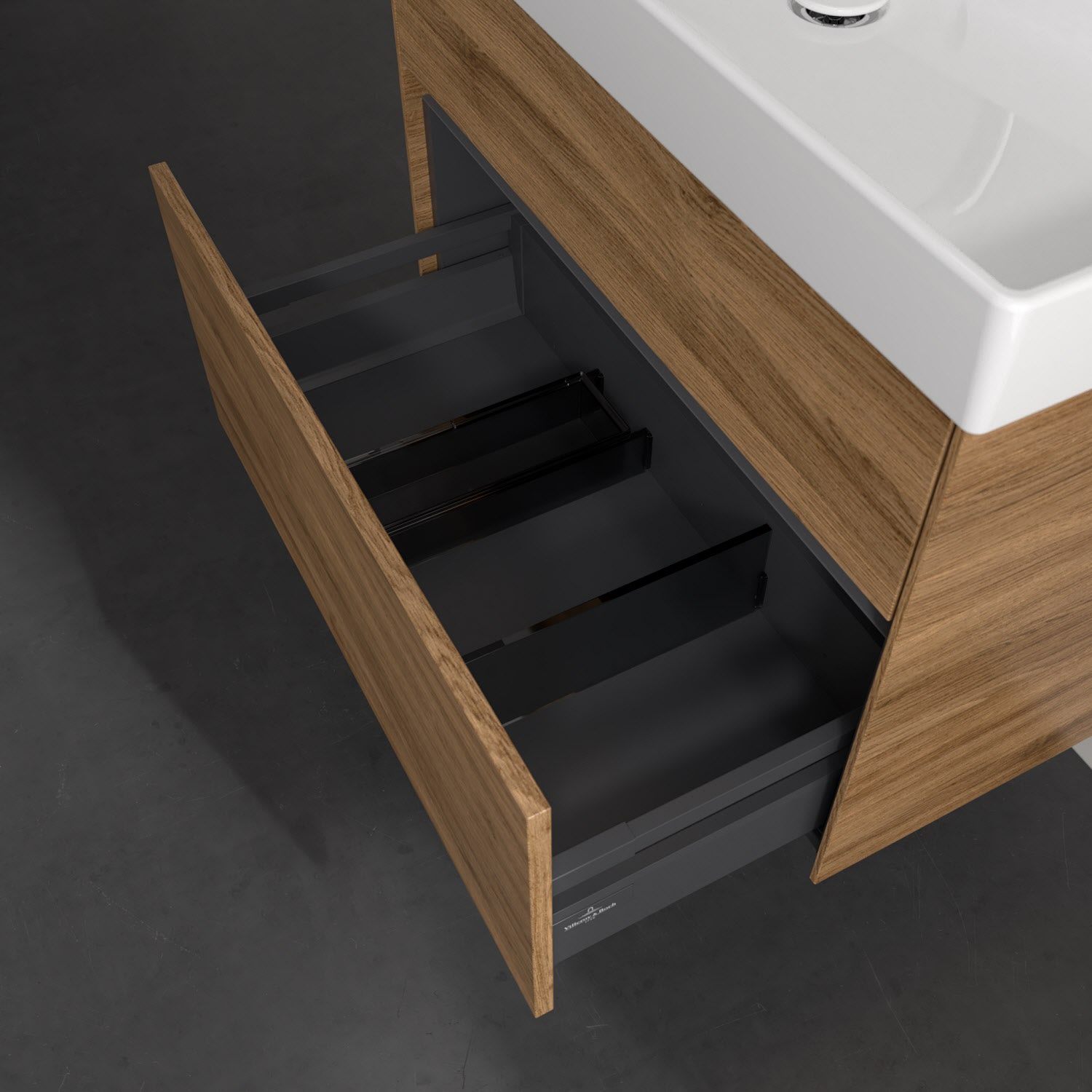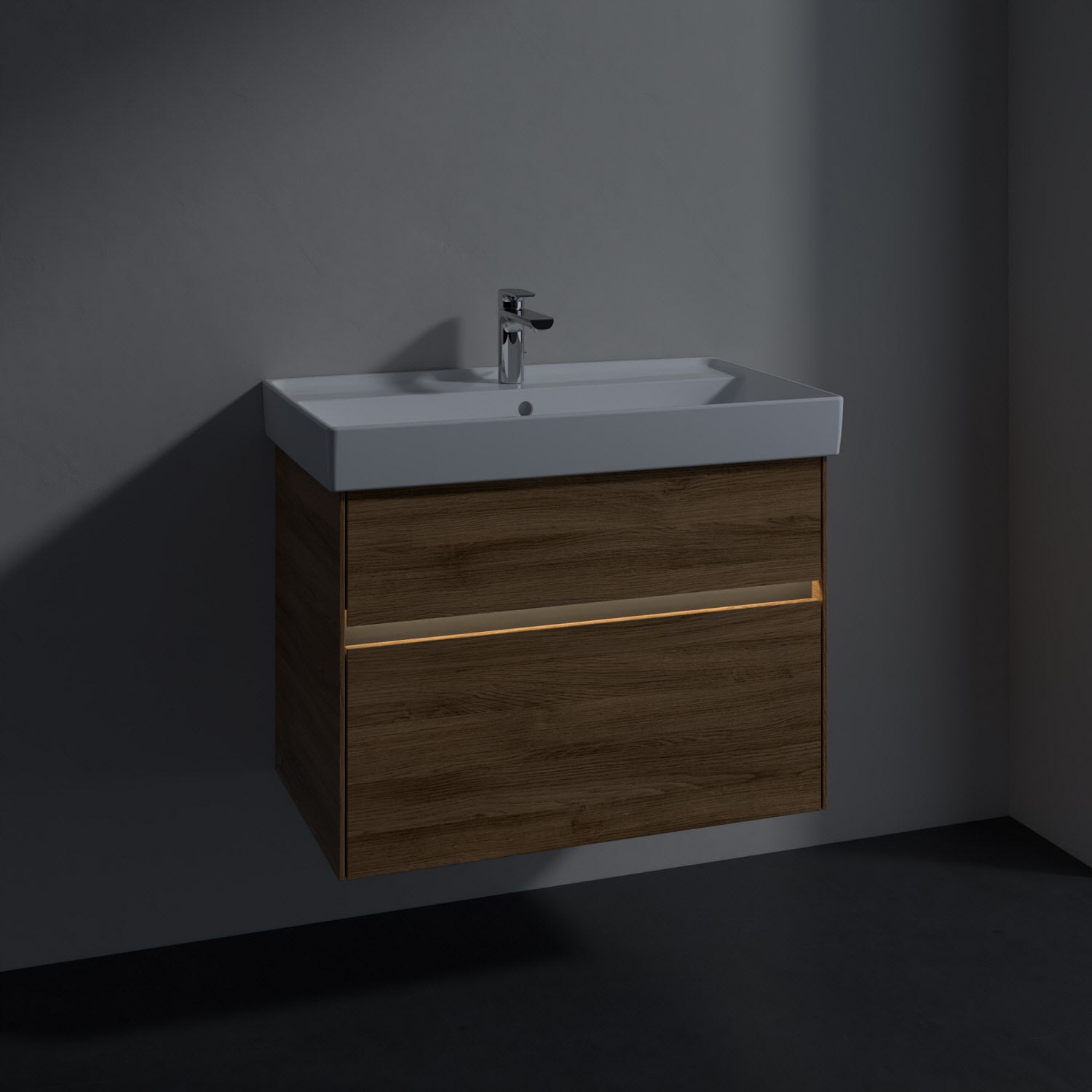 Villeroy & Boch Collaro Waschtischunterschrank 75,4 x 54,6 cm mit 2 Auszügen und LED Licht