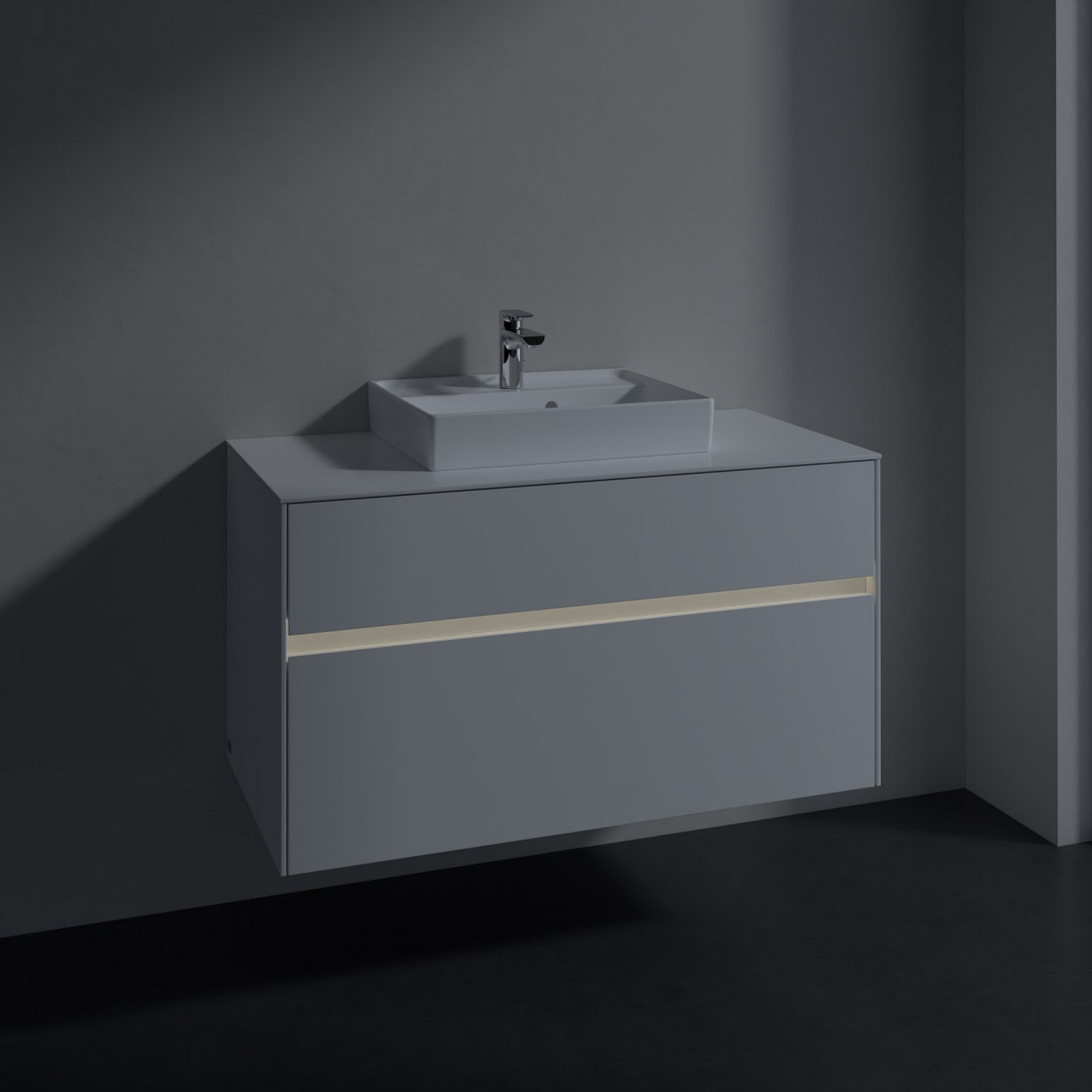 Villeroy & Boch Collaro Waschtischunterschrank 100 x 54,8 cm mit 2 Auszügen und LED Licht, für WT mittig