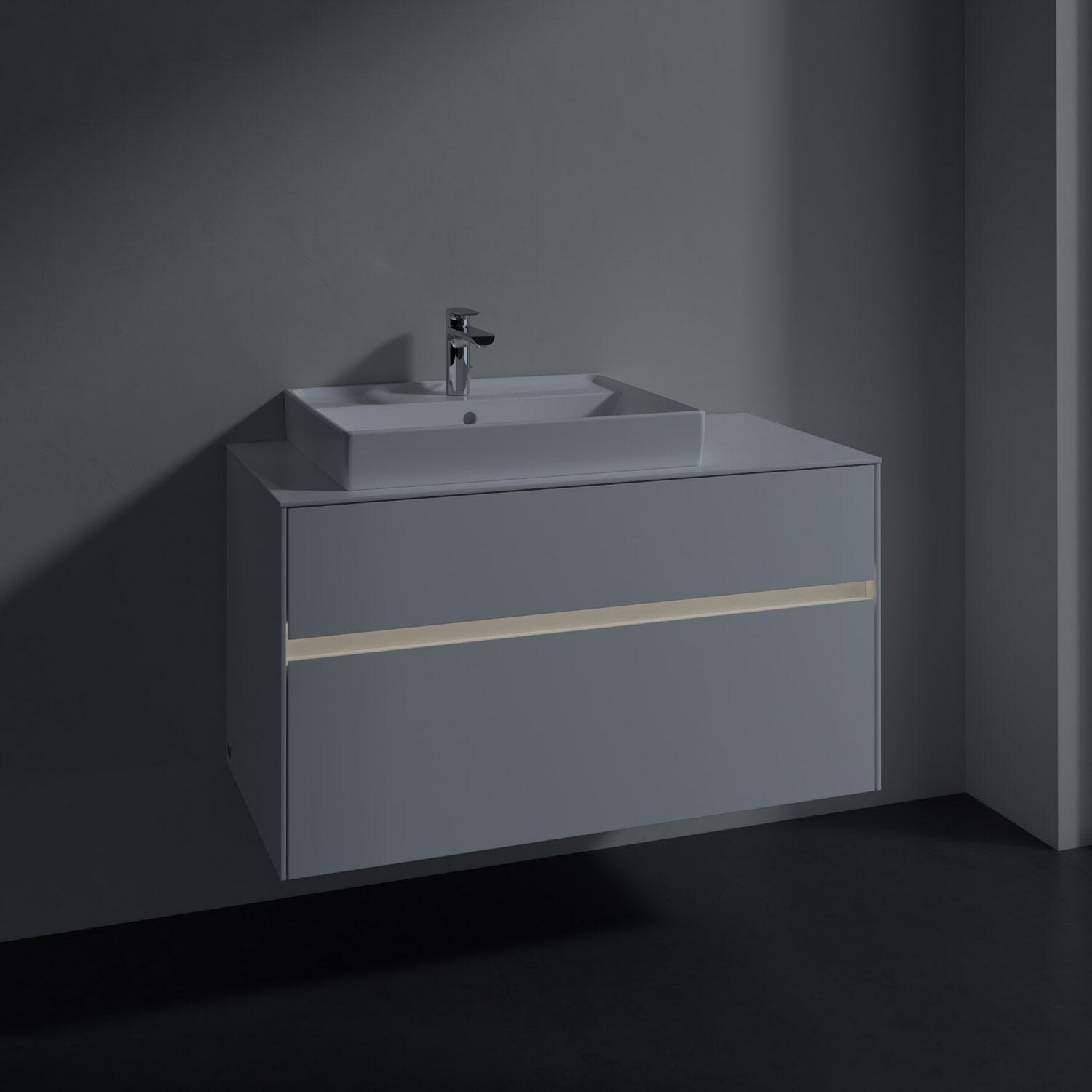 Villeroy & Boch Collaro Waschtischunterschrank 100 x 54,8 cm mit 2 Auszügen und LED Licht, für WT links
