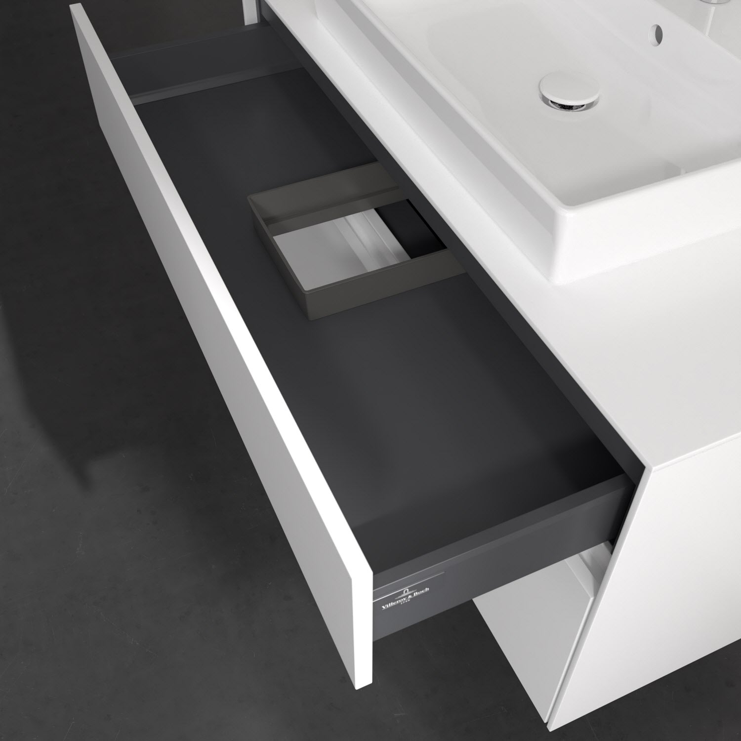 - kein Umfallen oder Verrutschen von Pflegeprodukten in den Schubladen dank rutschhemmendem Boden