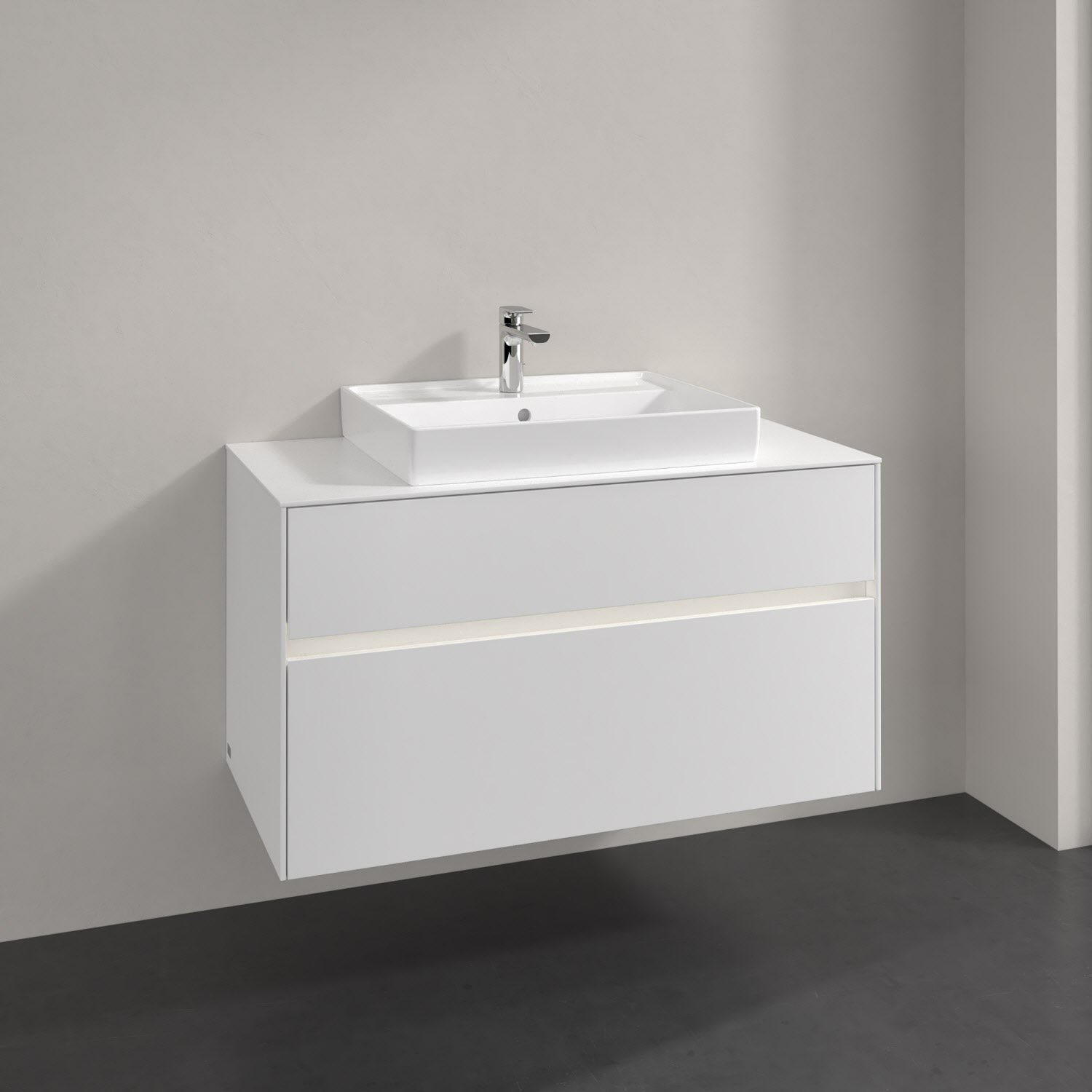 Villeroy & Boch Collaro Waschtischunterschrank 100 x 54,8 cm mit 2 Auszügen und LED Licht, für WT mittig