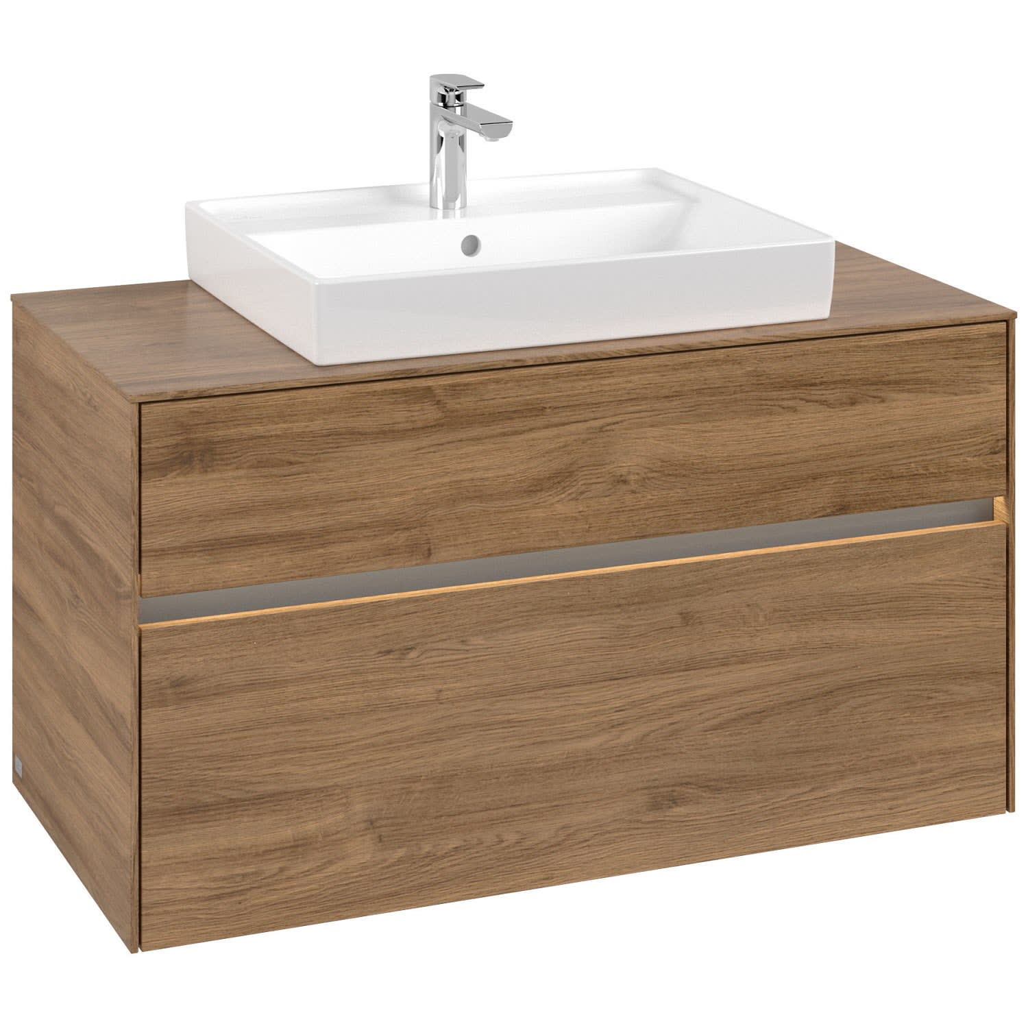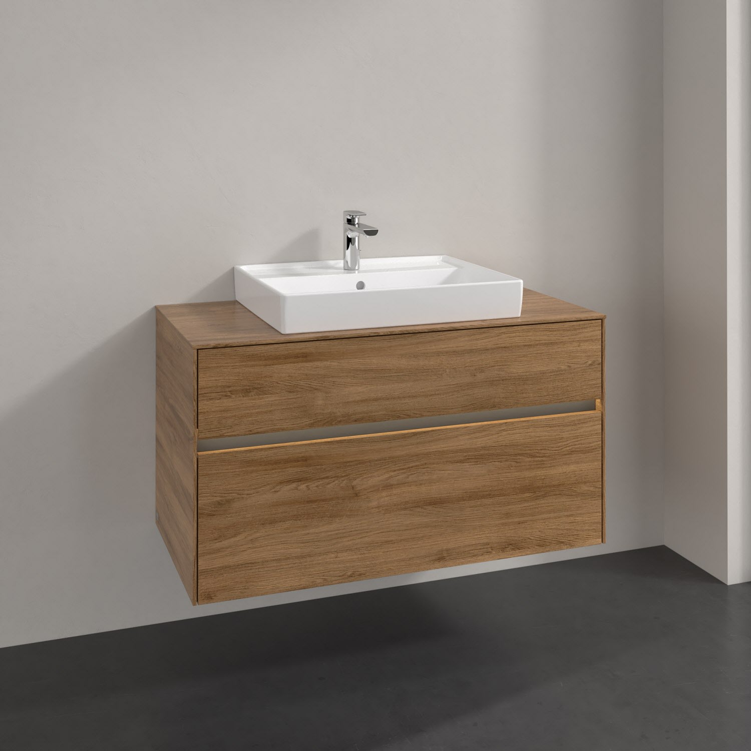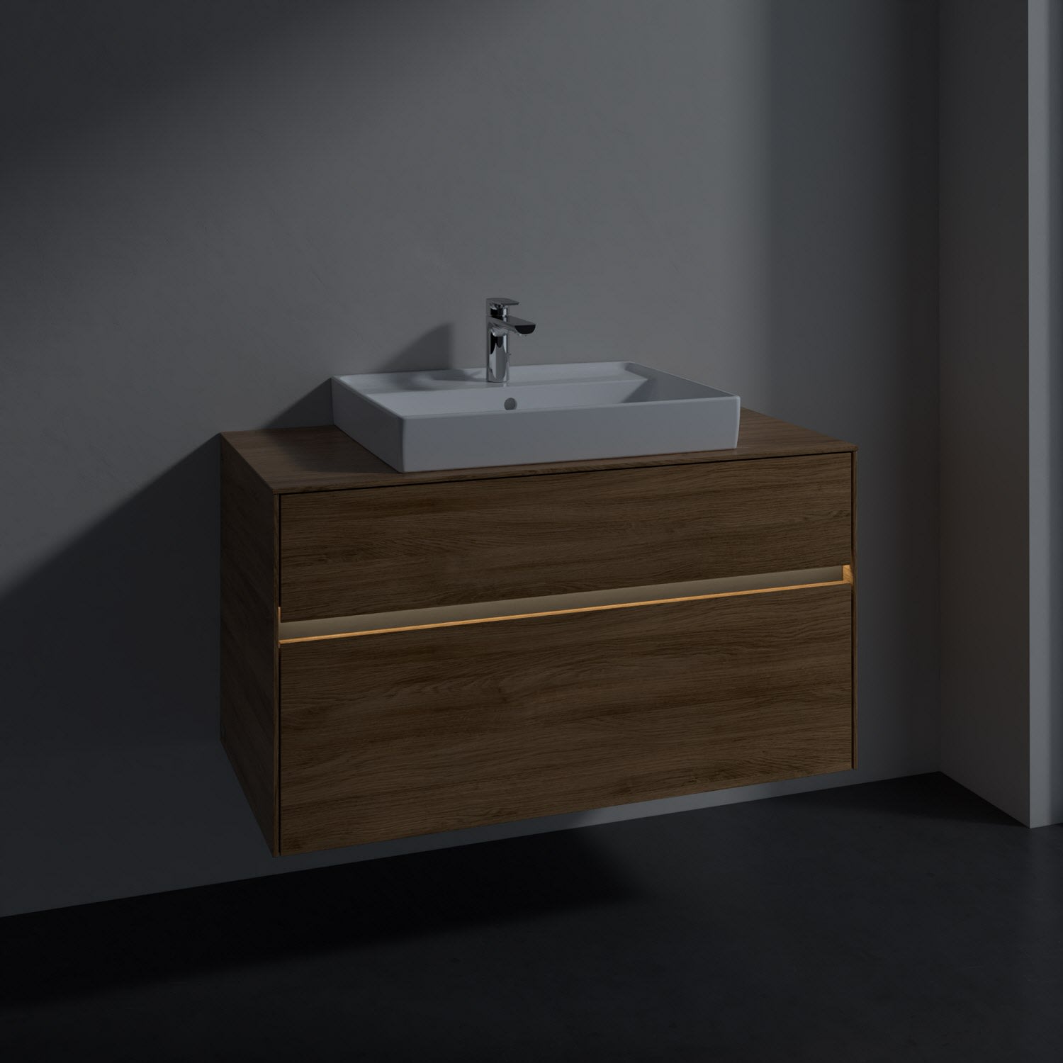 Villeroy & Boch Collaro Waschtischunterschrank 100 x 54,8 cm mit 2 Auszügen und LED Licht, für WT mittig