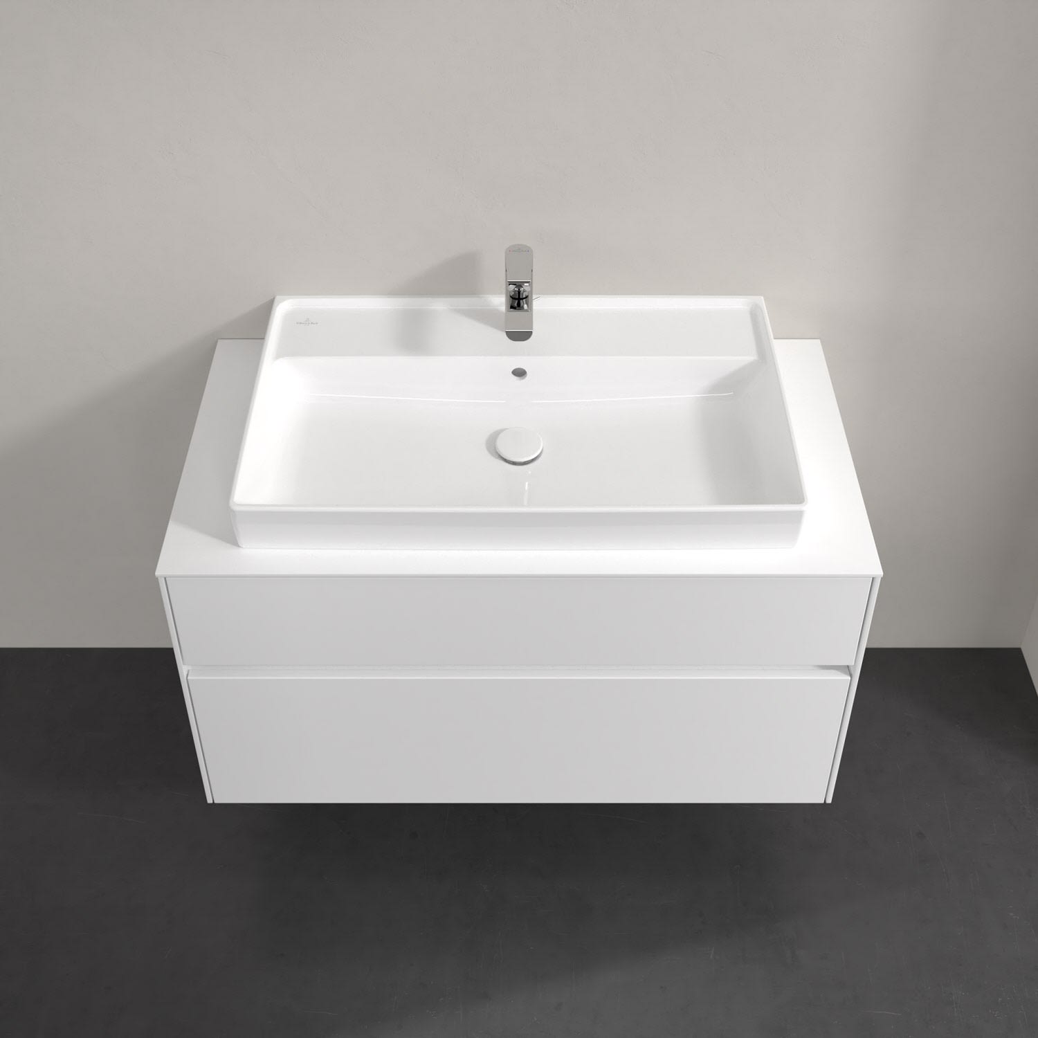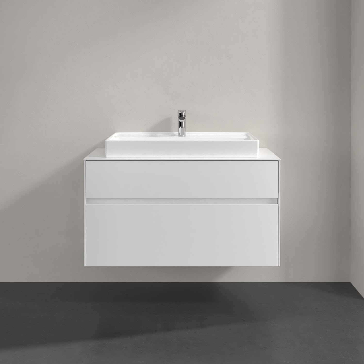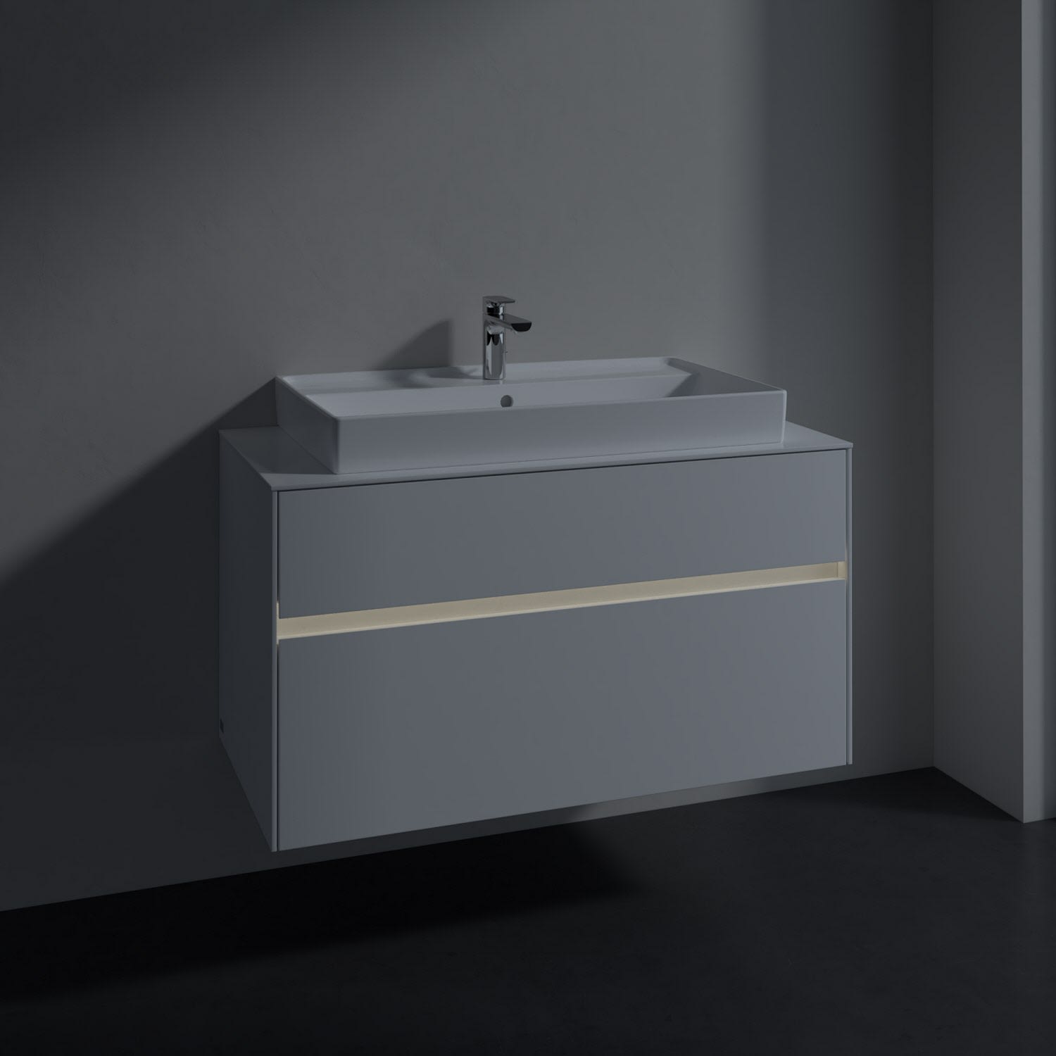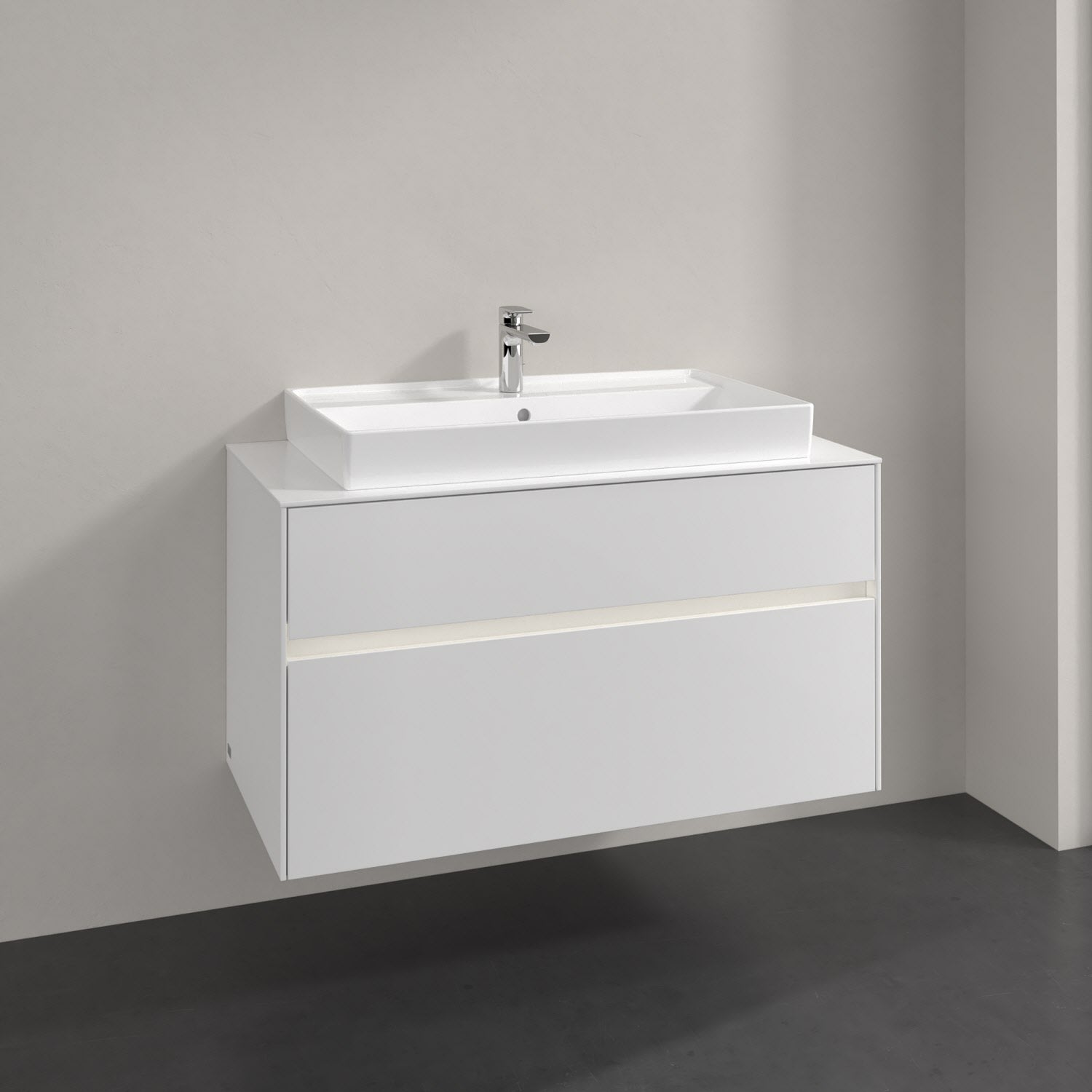 Villeroy & Boch Collaro Waschtischunterschrank 100 x 54,8 cm mit 2 Auszügen und LED Licht, für WT mittig